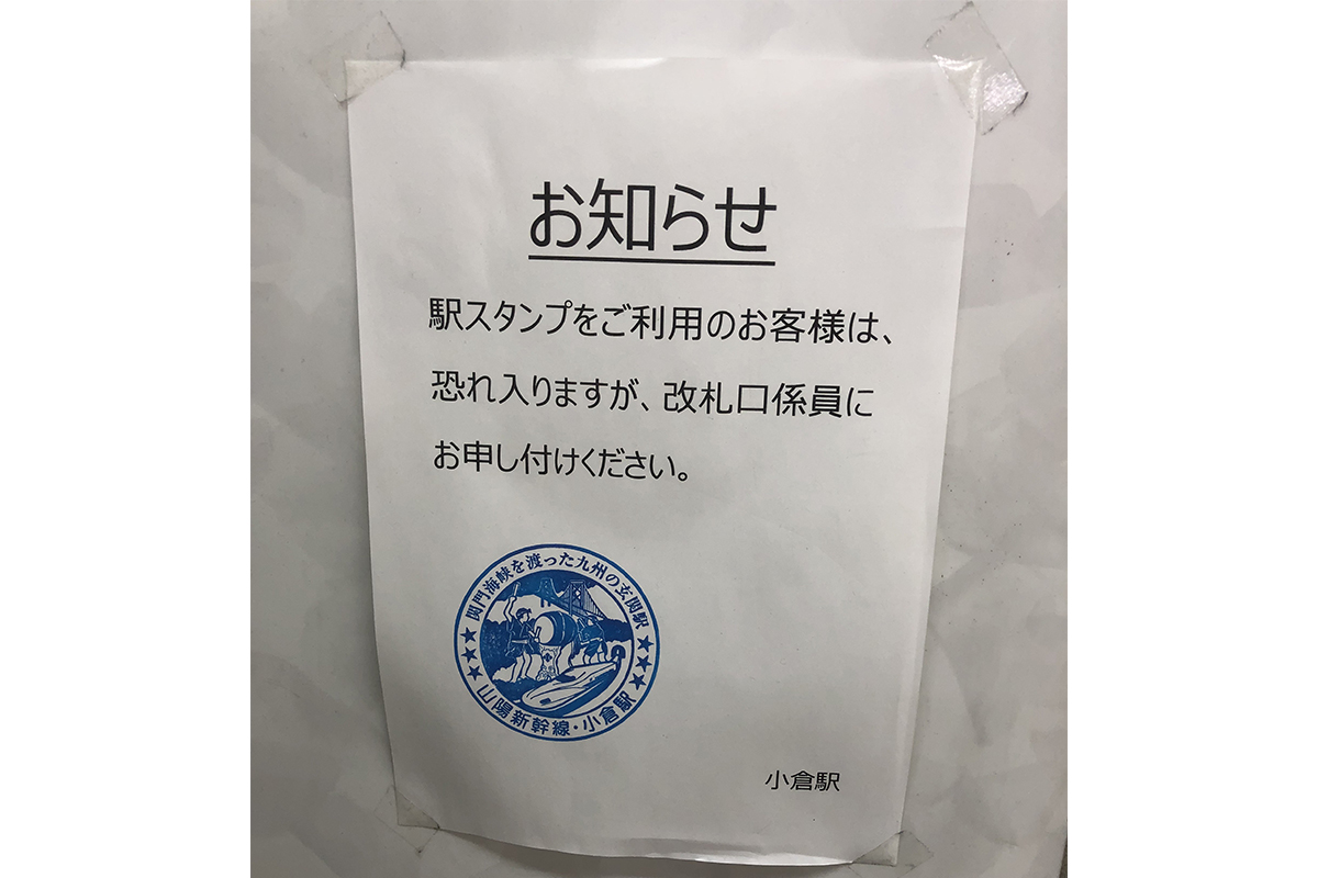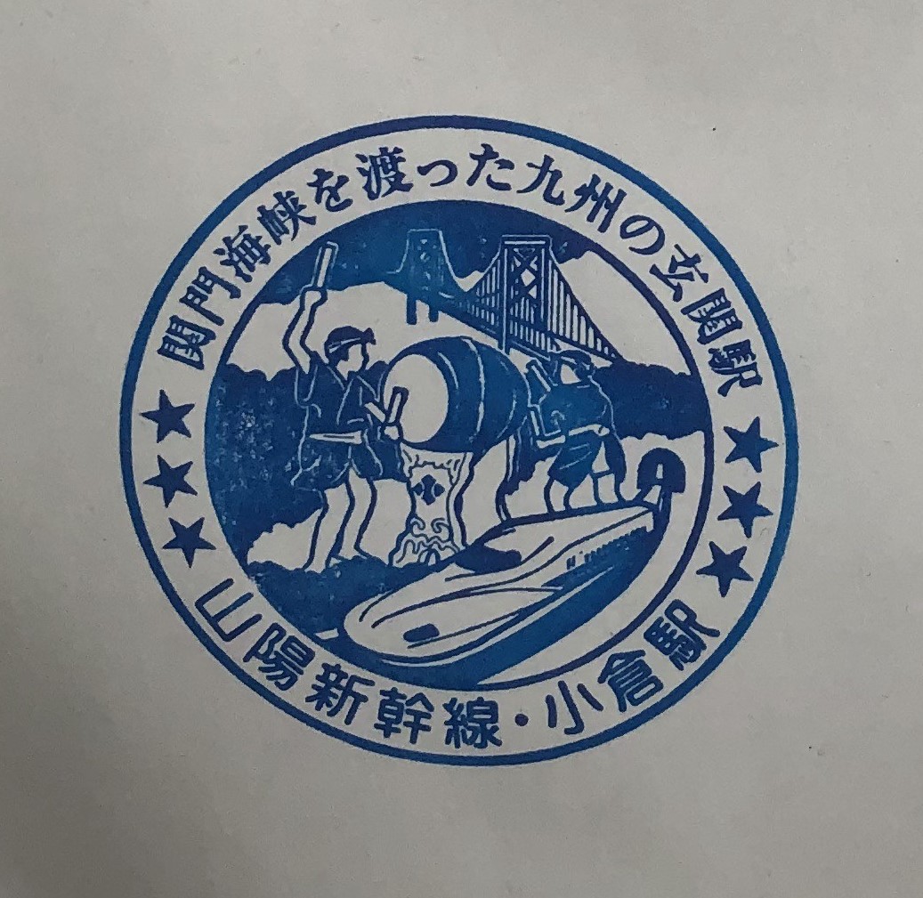 そうです、小倉駅の駅スタンプは貰えます。円の中には、祇園太鼓や関門橋がぎゅっと詰まってます。