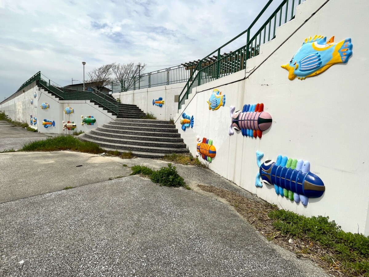 海の生き物がとてもカラフルでキャッチーなデザインになっています。「新門司東緑地」は新門司マリーナから新門司検疫場の辺りまで伸びる長い緑地です。散策路になっていますが、このオブジェがあるのは一部だけです。散歩がてらにオブジェを探してみるのも楽しいかもしれませんね。