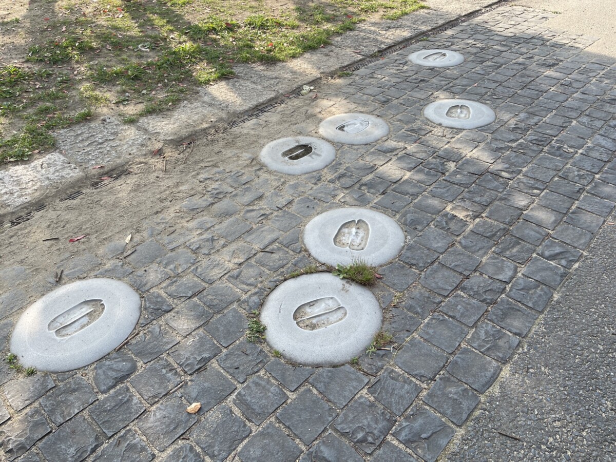 小倉北区の「勝山公園 子どもの遊び場」で動物の足跡を発見。しかも、何種類かの動物がいるようです。なんの足跡かわかりますか?