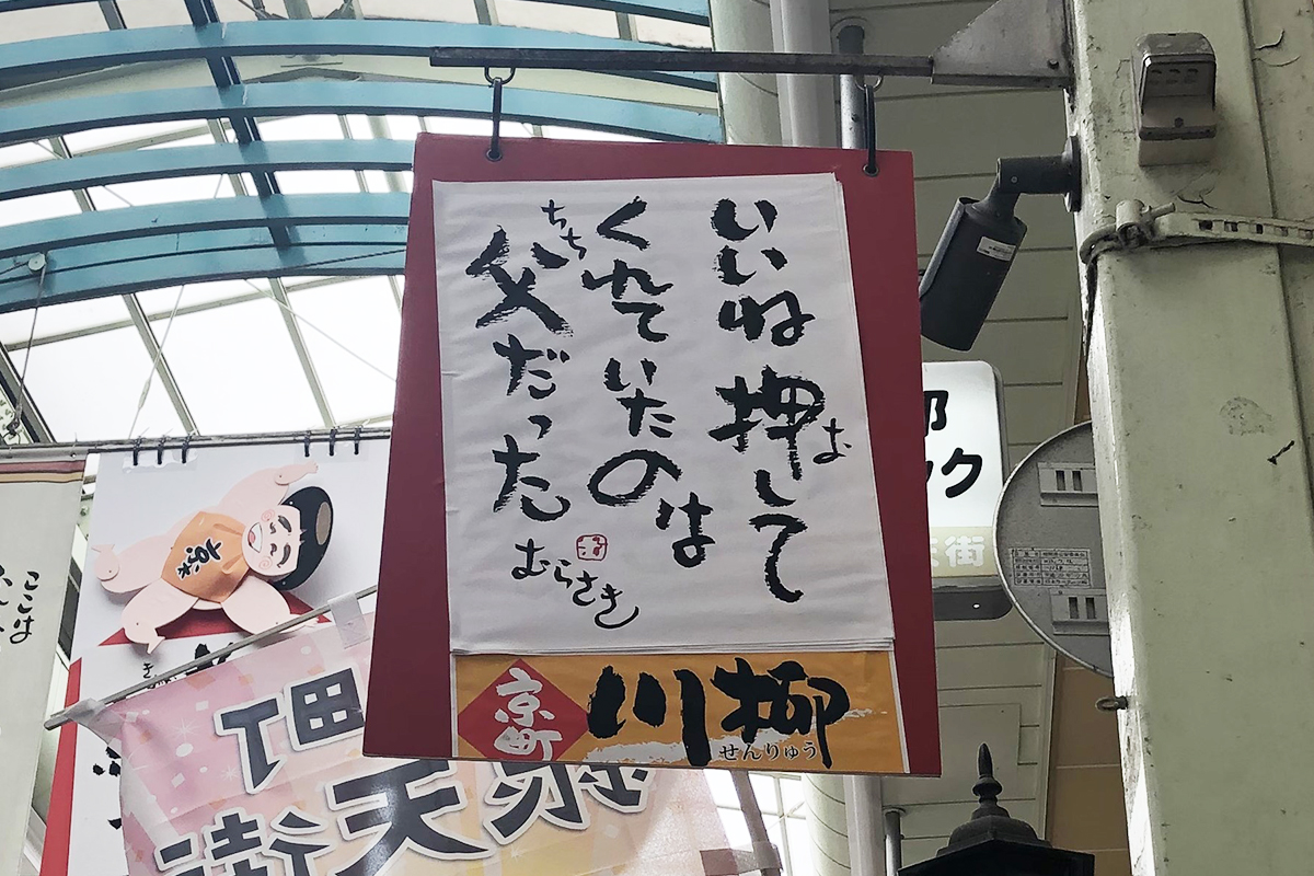 小倉京町銀天街を歩くと川柳が飾られてました。編集部員が胸を打たれたり、ほっこりした作品をピックアップ。