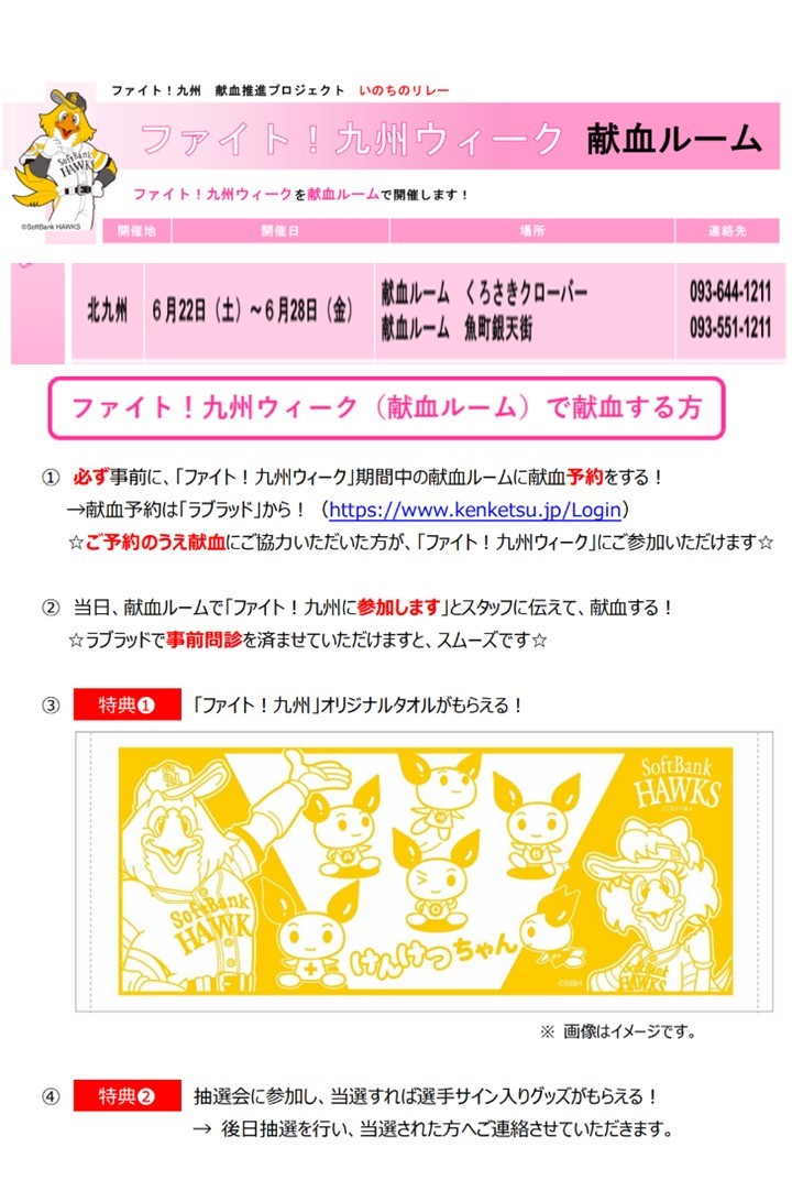▶福岡県赤十字血液センター北九州事業所 「ファイト!九州」献血推進プロジェクトの詳細はこちら