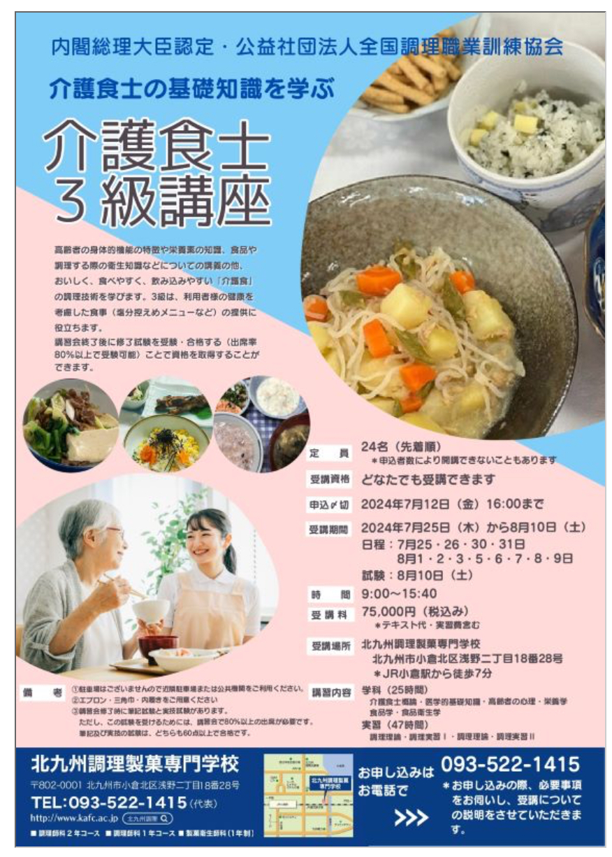 ▶北九州調理製菓専門学校 「介護食士3級講座」開校の詳細はこちら