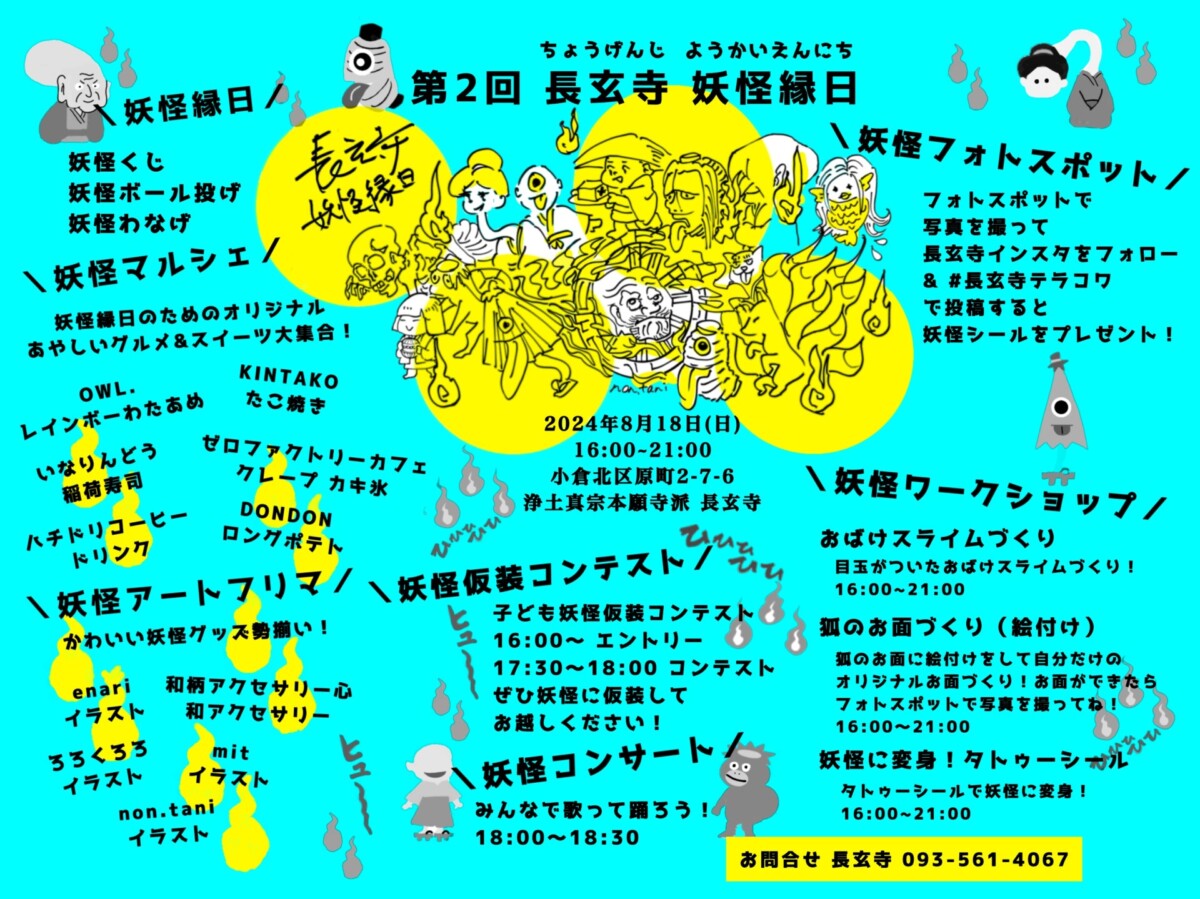 小倉北区原町にある長玄寺は8月18日、「第3回 長玄寺おてらのこわ〜いこわいおはなし会『テラコワ』& 『妖怪縁日』」を開催します。