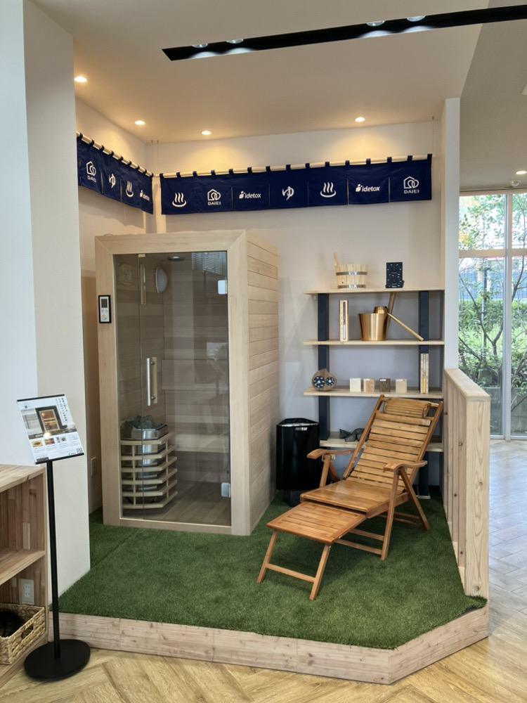 今年5月、省スペースでも設置可能なサウナを店内に設置し、実際に体験できるようになっています。