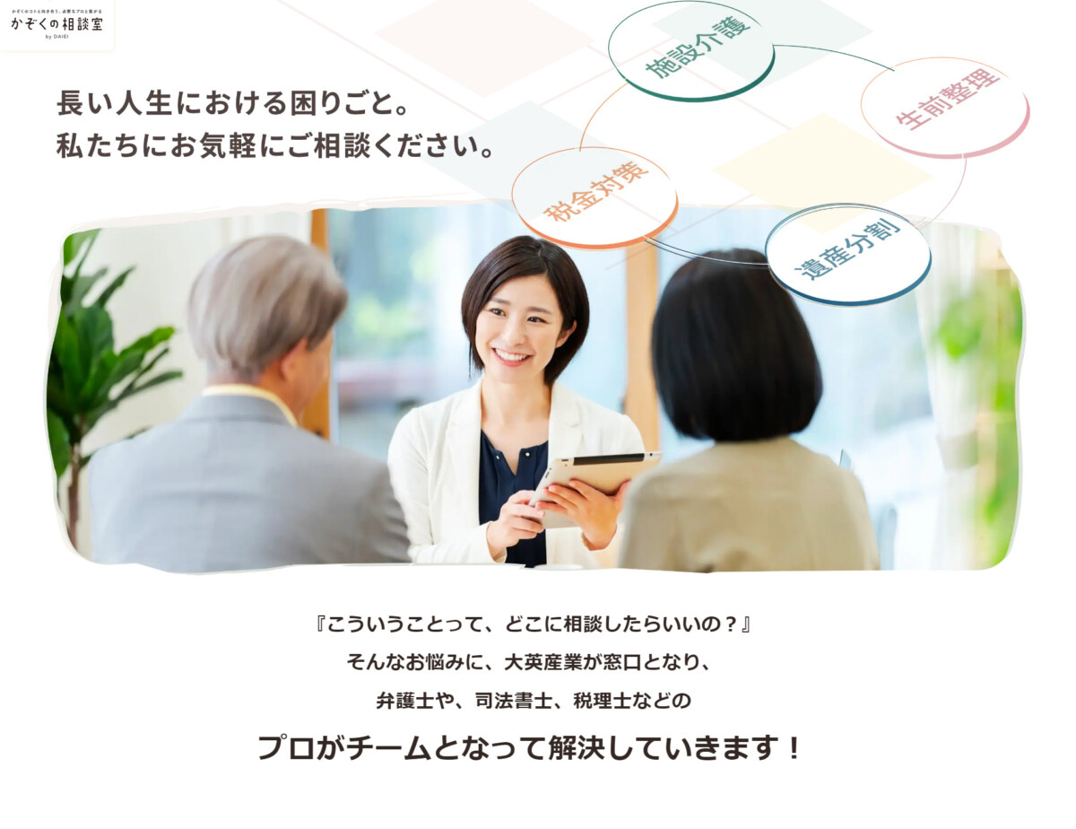 理解しづらい“税金”にまつわる相談、施設介護の紹介のほか、遺産分割についても専門家と一緒に最適な方法をサポートしてくれます。