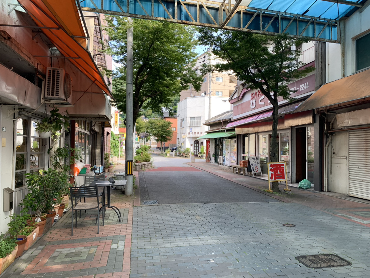 通りには、庄司中央通りという看板。中央市場はこの通りを境に2つのアーケードがあり「小暇」は、老松公園側のアーケードの庄司中央通り側に面した場所にありました。