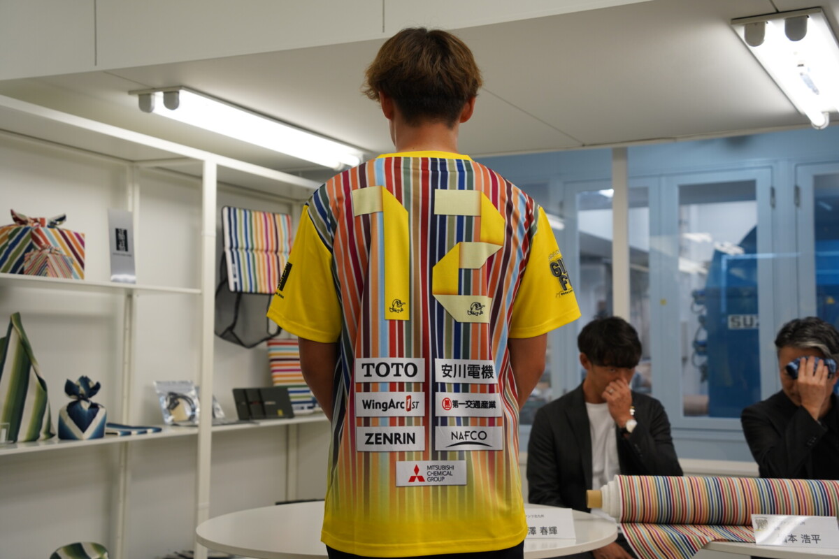 ギラヴァンツ北九州の石田真一社長は、「小倉縞縞は大切な文化を守りつつも、新しいことへの挑戦を欠かさず日々進化を遂げている。私たちのクラブも北九州のDNAを継承しつつ、この街の象徴として歩みを進めたい」との想いからコラボが実現したと明かしました。