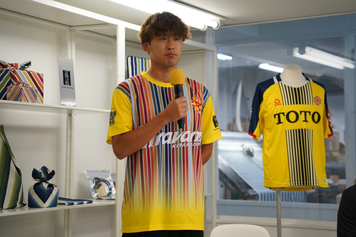 増本浩平監督は「日本を変えるべく奔走した幕末の志士達が戦う際に履いていた袴に使用された小倉織にあやかって、このシャツをたくさんの方に着ていただいて僕らのチームに力を貸してくれる仲間が増えると嬉しいと思います。また、今チームが上に向いていい状態であるので更に上を向いて登って行けるように、たくさんの方に応援していただきたい」と話しました。