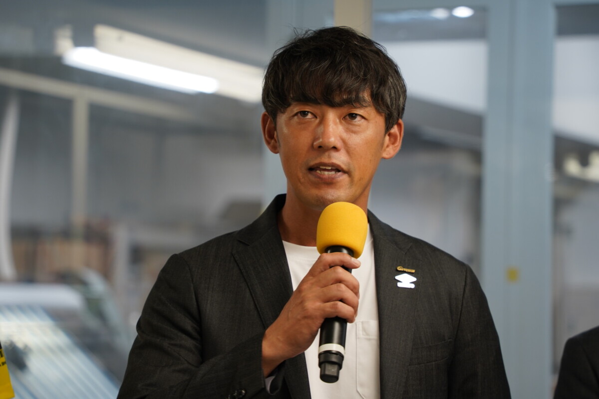 株式会社JEPLAN BRING Businessの小柴雄祐ジェネラルマネージャーよりギラフェスのコラボシャツと会社の取り組みについて説明がありました。