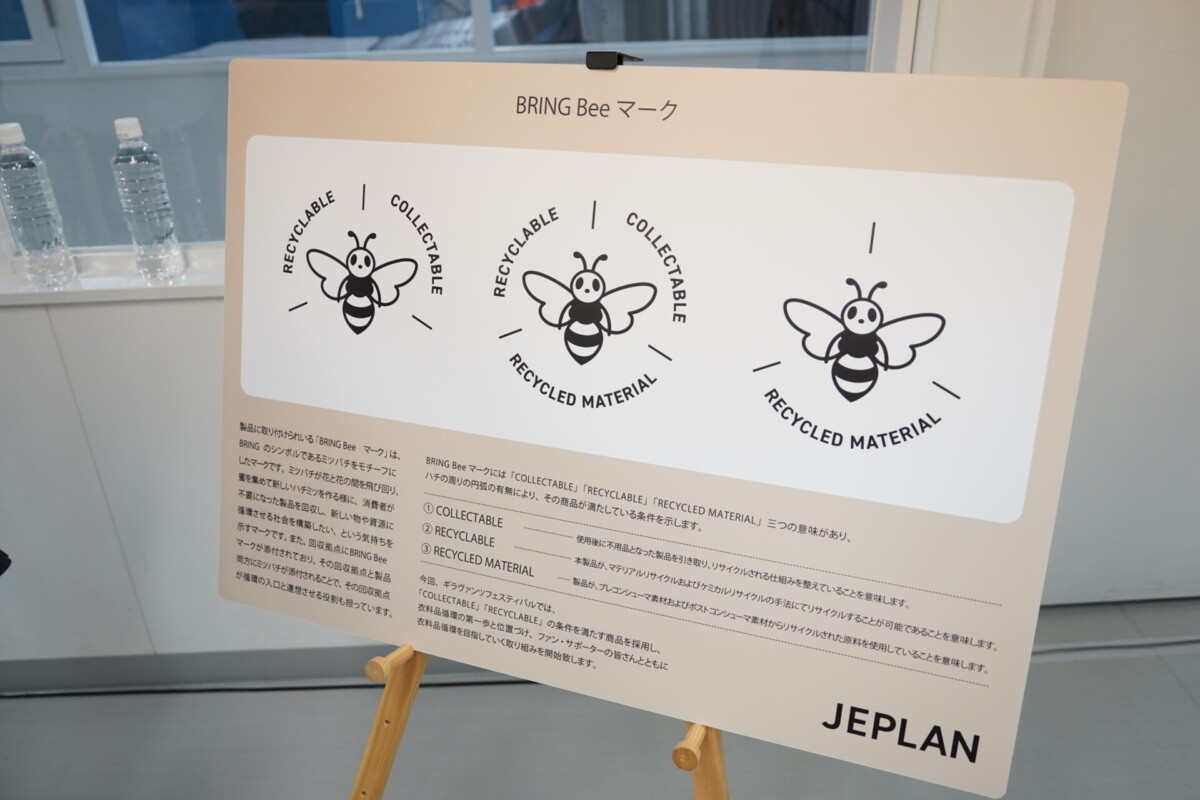 小柴ジェネラルマネージャーによると、「今回のギラフェスでは衣料品回収の取り組み『BRING Beeマーク』がついたTシャツを採用しており、使用後不要になった場合、適正にリサイクルすることが可能という意味が込められています」とのこと。衣類回収ボックスについても設置する予定だそうです。