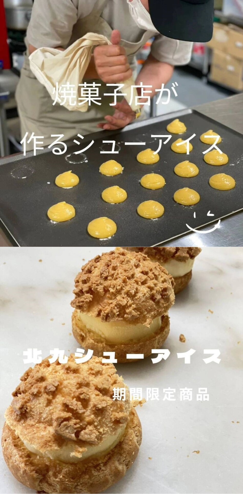 昨年ご好評いただいた「北九シューアイス」を7月より土・日・祝限定販売開始(平日はご予約にて承ります)します。当店人気の塩バニラサブレをトッピングしたクッキーシューに、生クリーム入り自家製カスタードクリーム、バニラアイスクリームをサンドした元ホテルパティシエが作る本気のシューアイスを是非お楽しみください。