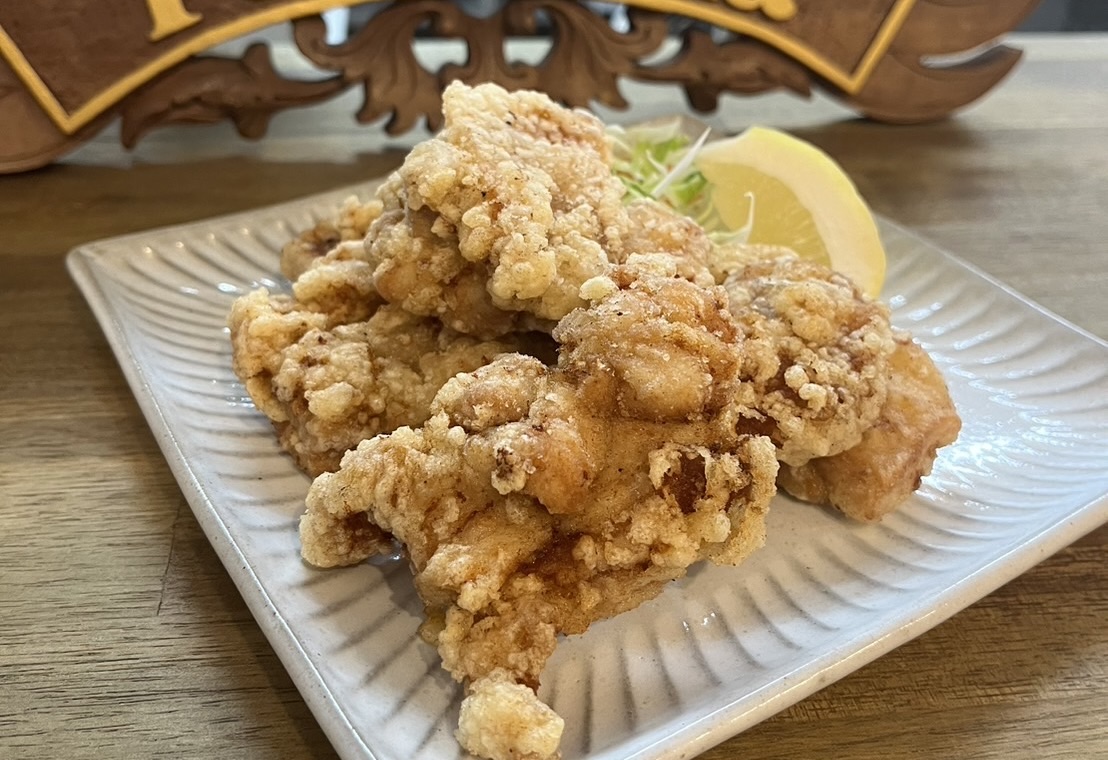 3品目は「九州産もも肉のからあげ」。九州産のもも肉を使用し、特製ダレに漬け込んだオーナーこだわりのからあげです。ディナータイムのおつまみのほか、夕飯のおかずにテイクアウトするのもいいですね。