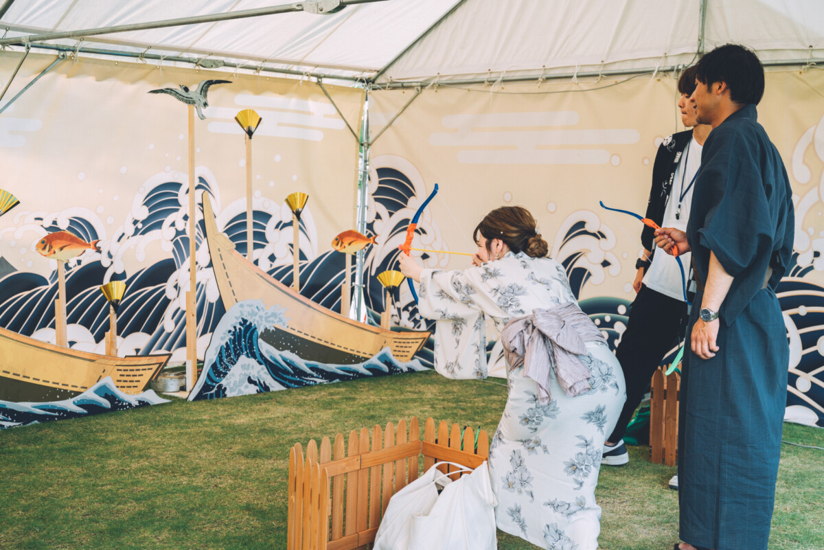 射的・弓矢・野菜投げ・スーパーボール掬いといった縁日コーナーのほか、メインステージではアーティストの演奏を聴くことができるそうです。