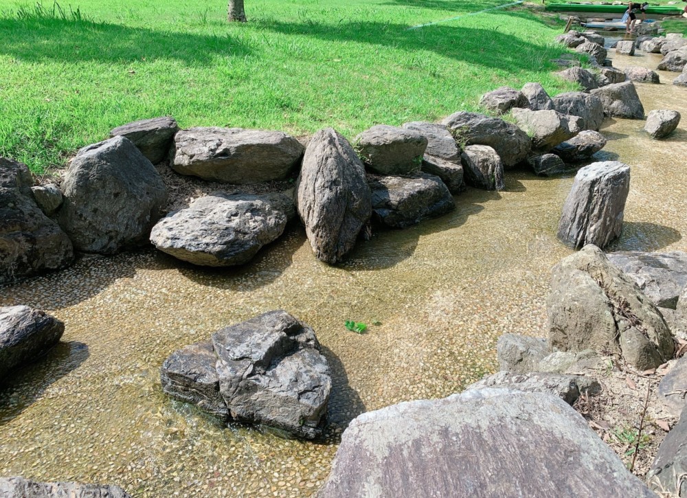 流れ緩やかな人工の小川で遊べる「山田緑地公園」(小倉北区)