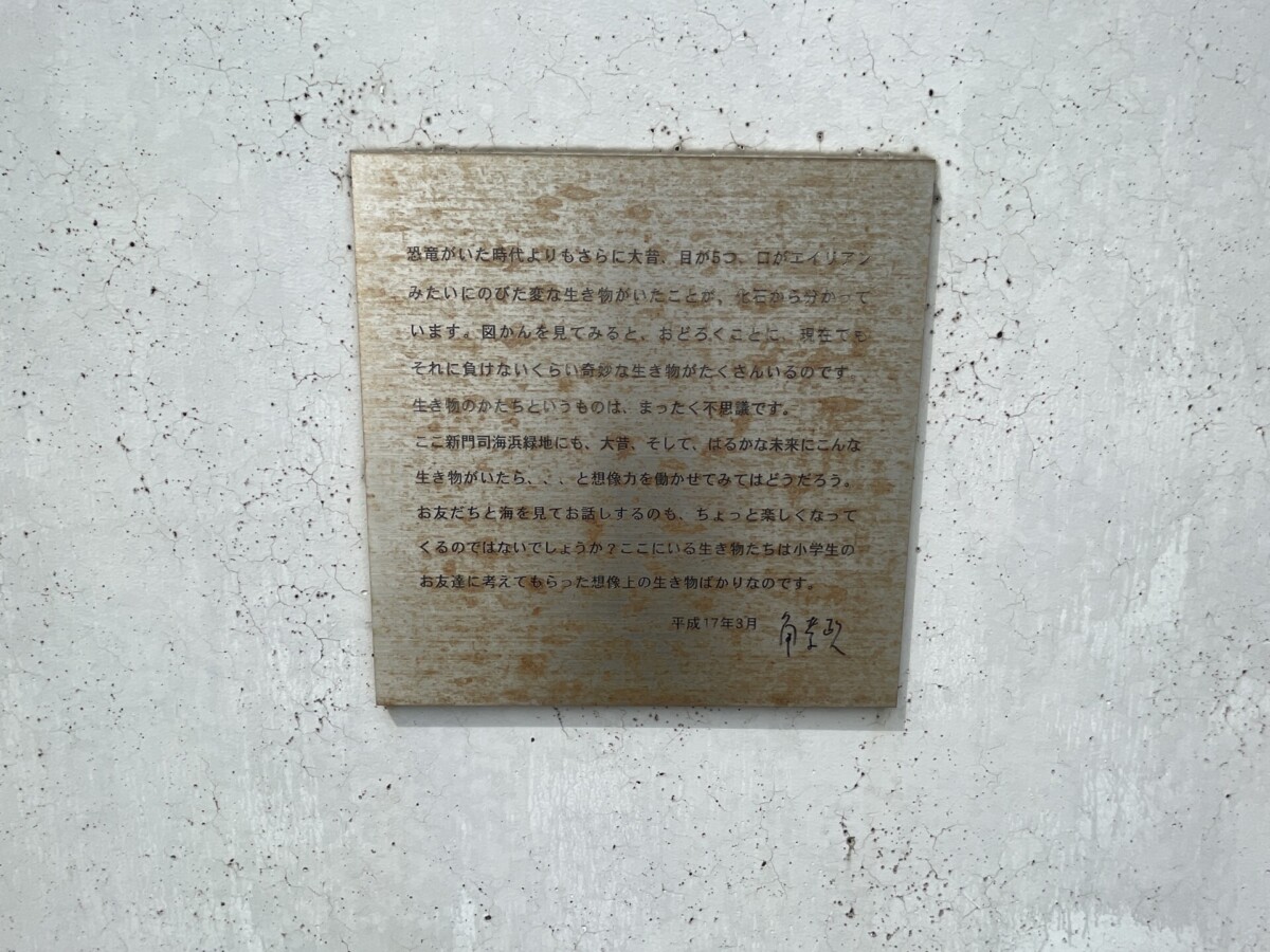説明の最後に「ここにいる生き物たちは小学生のお友達に考えてもらった想像上の生き物ばかりなのです」と書いてあり、どのような生き物なのか想像しながらオブジェを眺めていました。