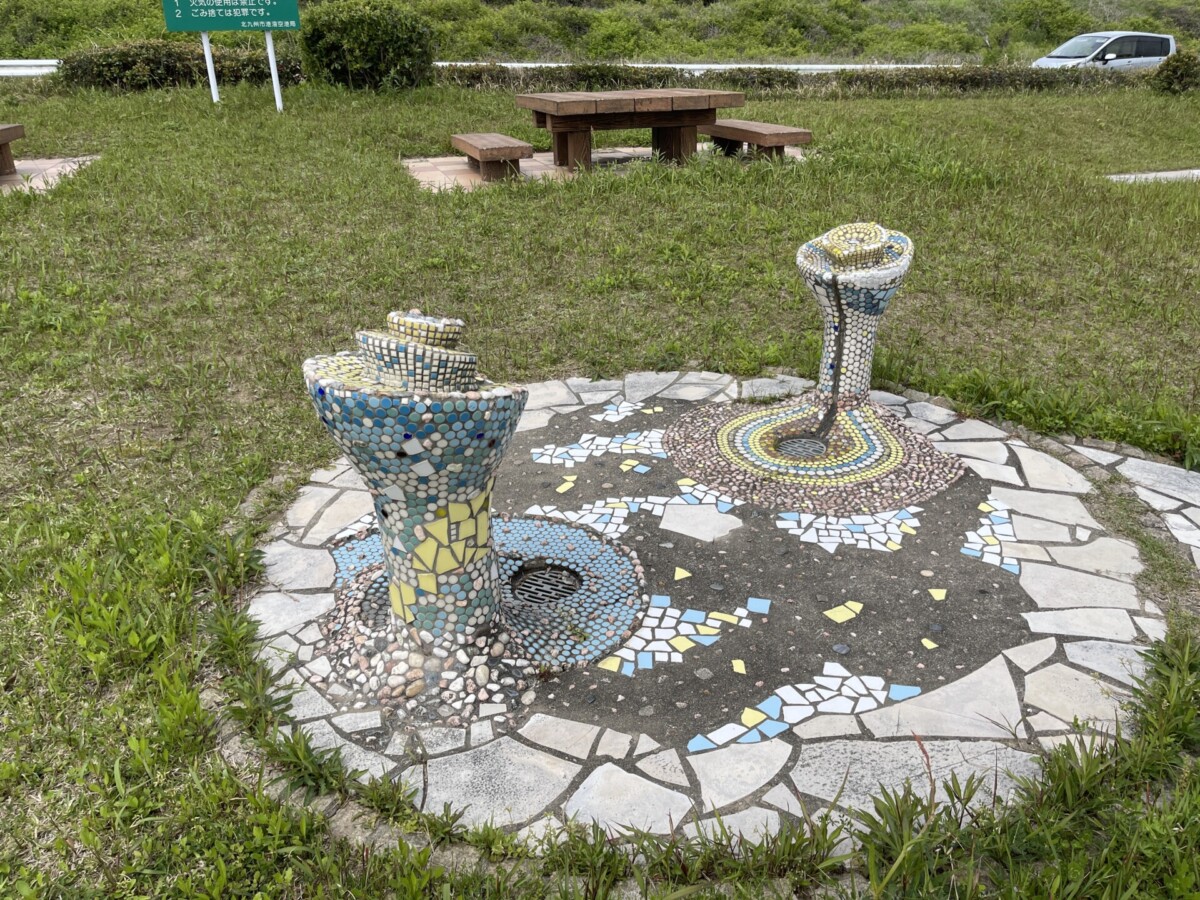 猿喰大橋の方には、カラフルなタイルを使った水飲み場もありました。