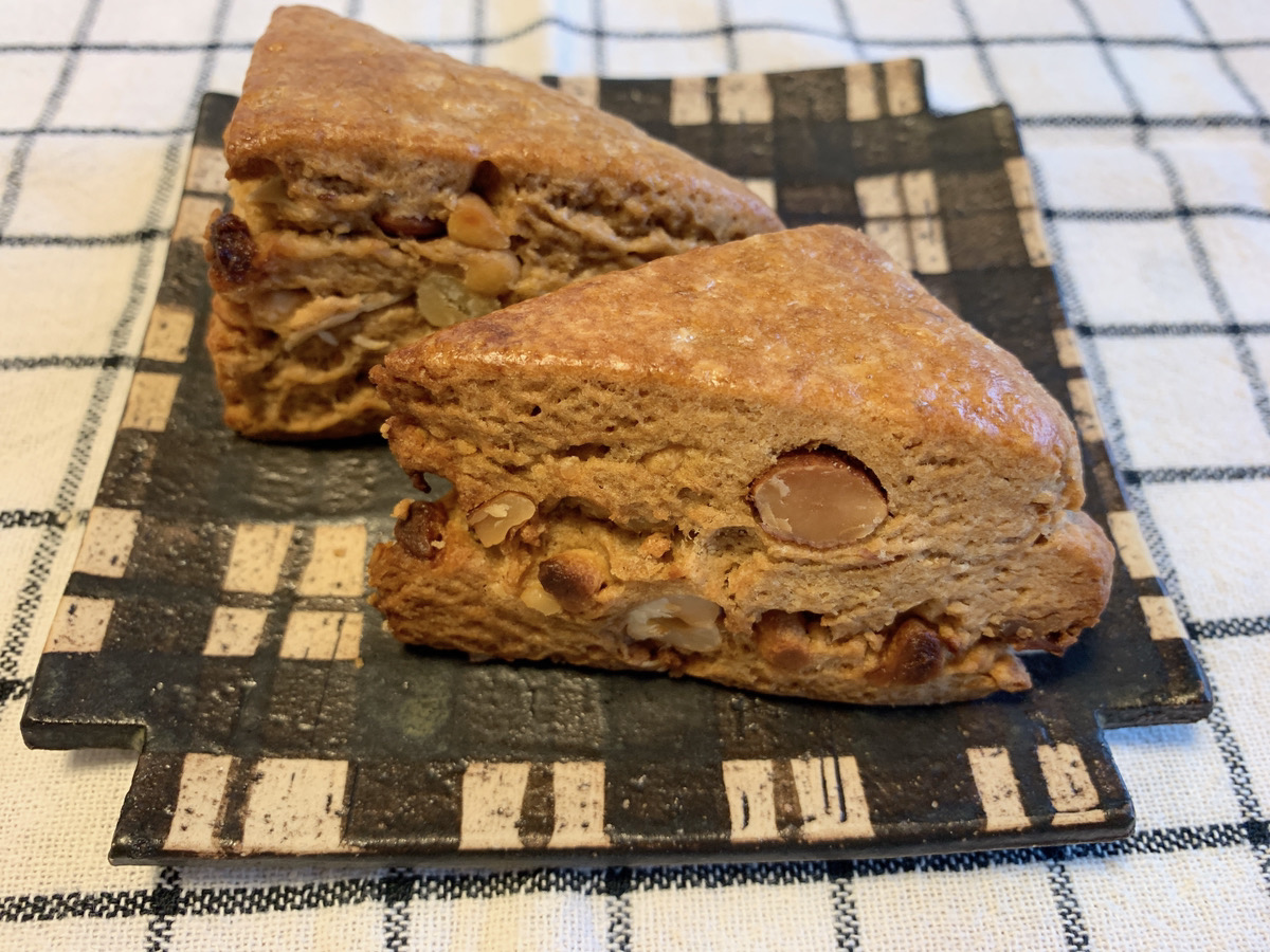 スコーン(コーヒーキャラメルナッツ)は、4個入り1包装480円。しっとりタイプのスコーンで、コーヒーとキャラメルのほどよい風味が効いていました。美味しいコーヒーといただきたくなる1品でした。