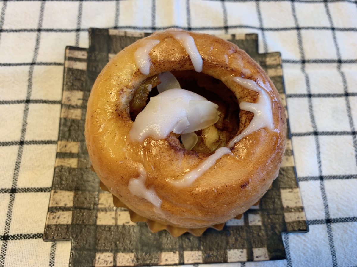 ふんわりとした生地に角切りのりんごのコンポートがごろっと入ったりんごシナモン(1個230円)。シナモン好きにはたまらない1品です。