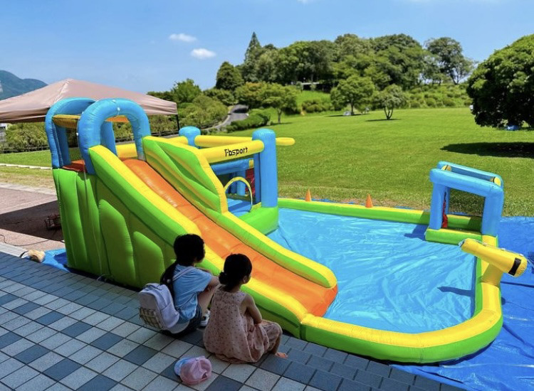 「花農丘(はなのおか)公園(北九州市立総合農事センター)」の芝生広場に、水鉄砲やボールで遊ぶこともできる「水遊び場」がオープンしました。