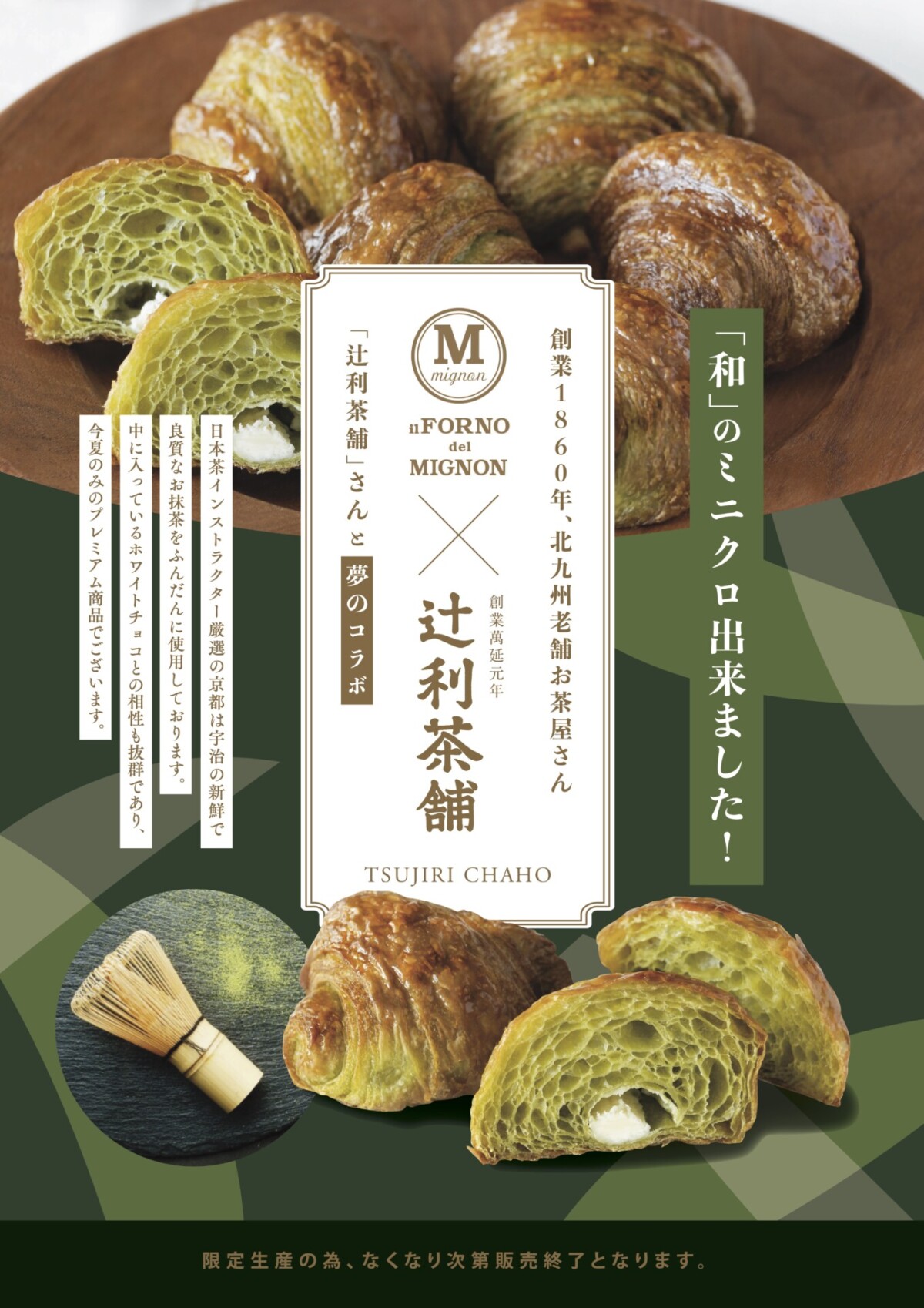 • 辻利茶舗×ミニヨンのコラボ「辻利茶舗抹茶のミニクロワッサン」が夏季限定販売【北九州市】