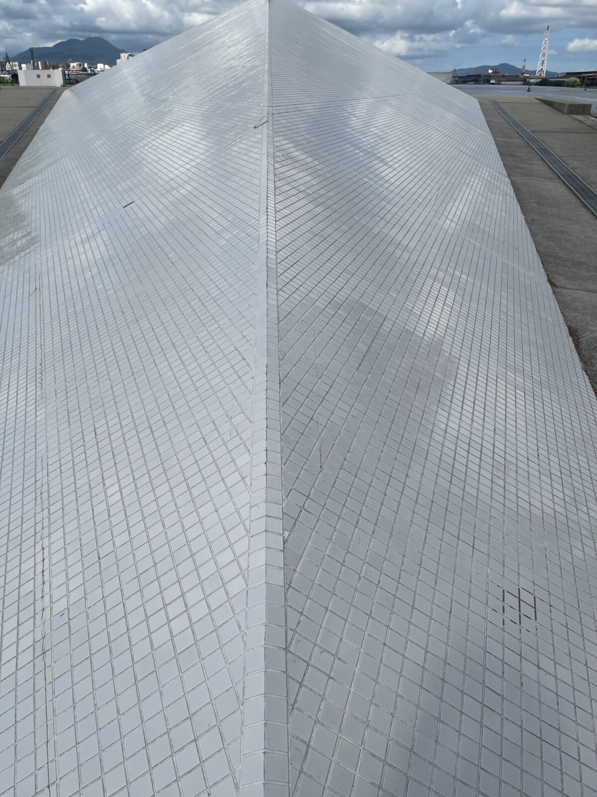 長い三角の形をしており、近づくと硬いタイルが貼られています。登って滑り台のようにして使っている人を見かけたので、実際に登ってみました。