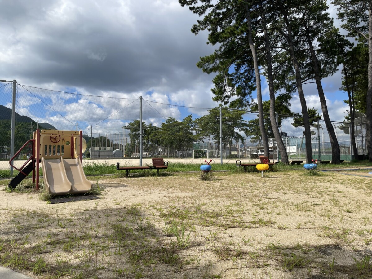 砂場の隣には、小さな滑り台や謎の生物の形をしたスプリング遊具もあり、小さな子どもも楽しめそうです。