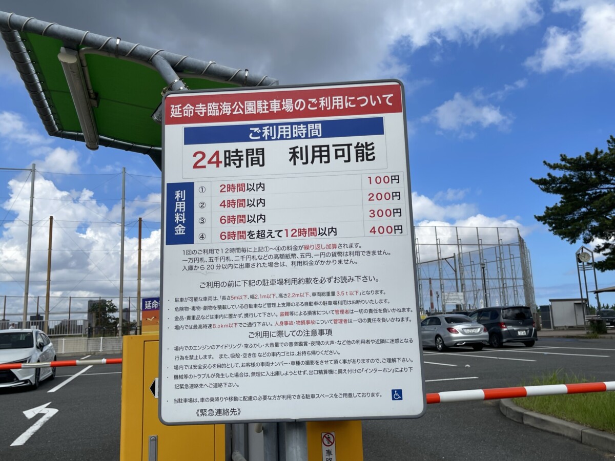 公園には101台駐車できる(うち身障者用3台)有料駐車場が併設されています。最初の20分のみ無料とのこと。入出庫は24時間可能です。