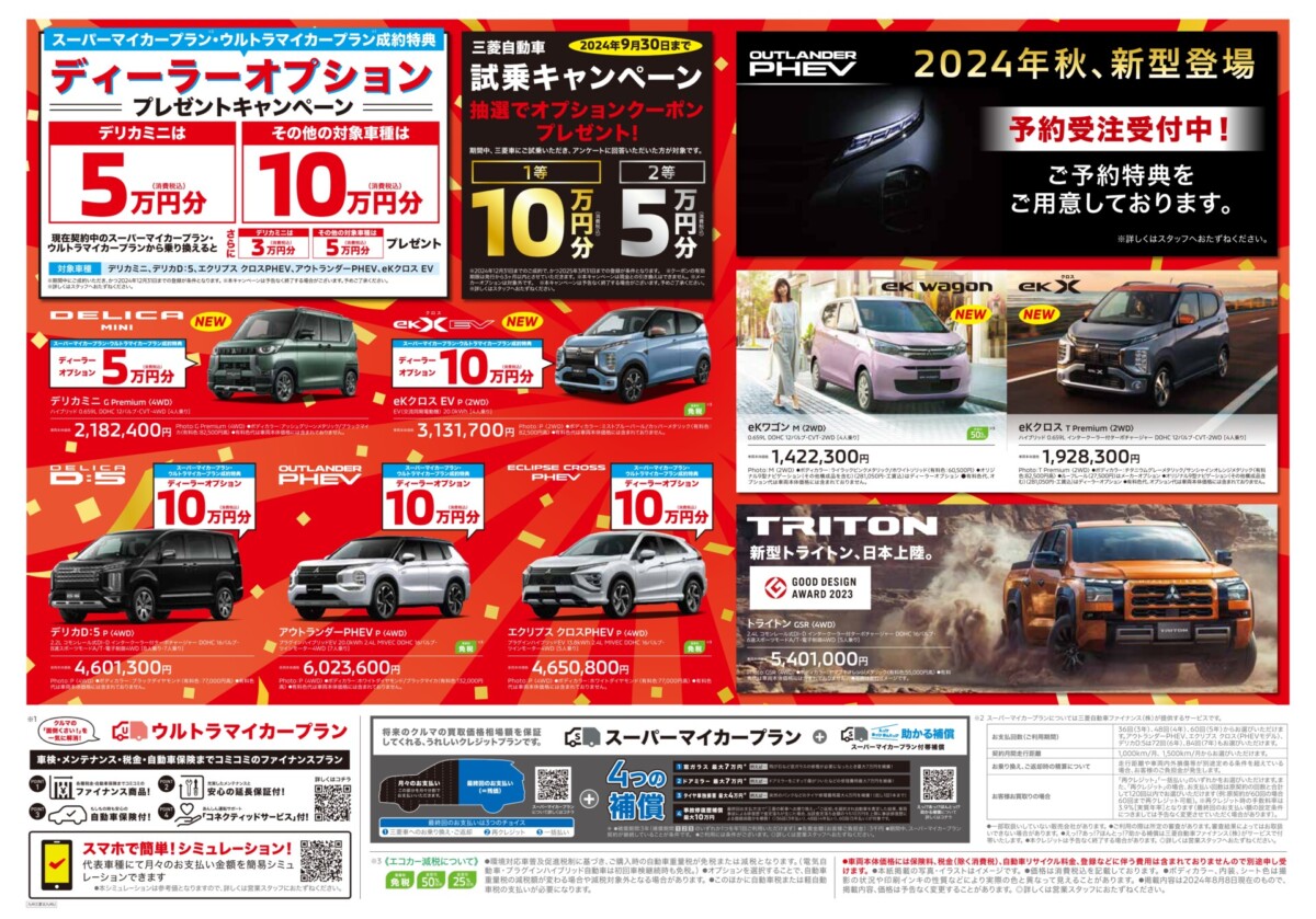 9月30日までは試乗キャンペーンも実施。期間中、三菱車に試乗しアンケートに答えると抽選で1等10万円分、2等5万円分のオプションクーポンが当たります。