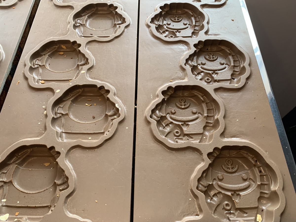 今回の店舗開店のために特注した「じーも」型の焼き型は、東京から取り寄せたものだそう。門司区のご当地キャラクターである「じーも」の愛らしい雰囲気がしっかり表現されていました。所説あるようですが、一説には「たい焼き」の発祥は東京とも言われているそうなので、たい焼き界の文化伝承も感じます。