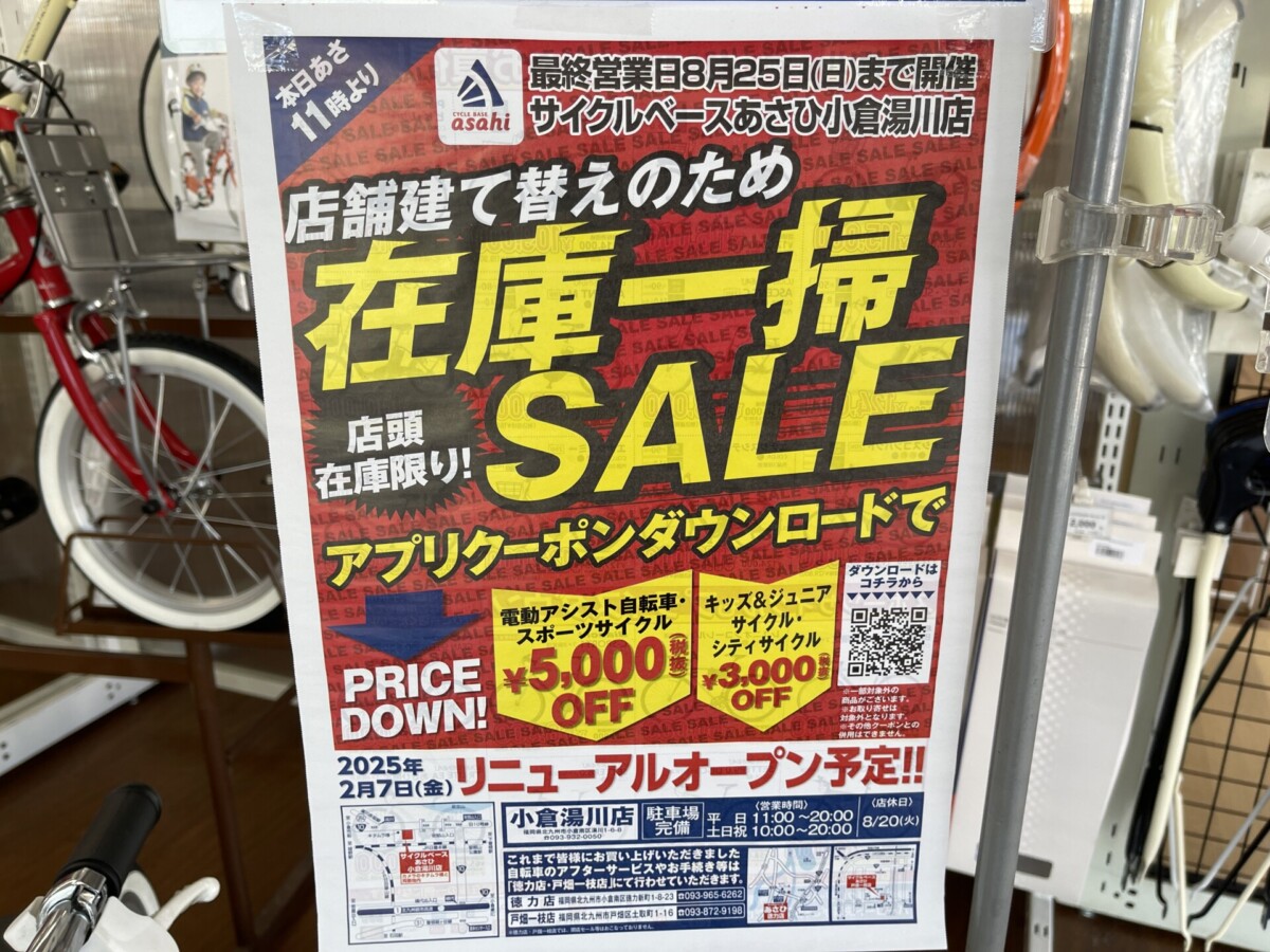 「サイクルベースあさひ小倉湯川店」は、8月26日より店舗建て替えのため一時休業します。