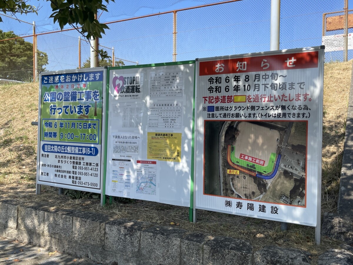 小倉南区中吉田にある「吉田太陽の丘公園」では現在、整備工事を実施しています。11月15日までの予定で、工事に伴って公園内の一部区間の通行止めが行われるとのことです。