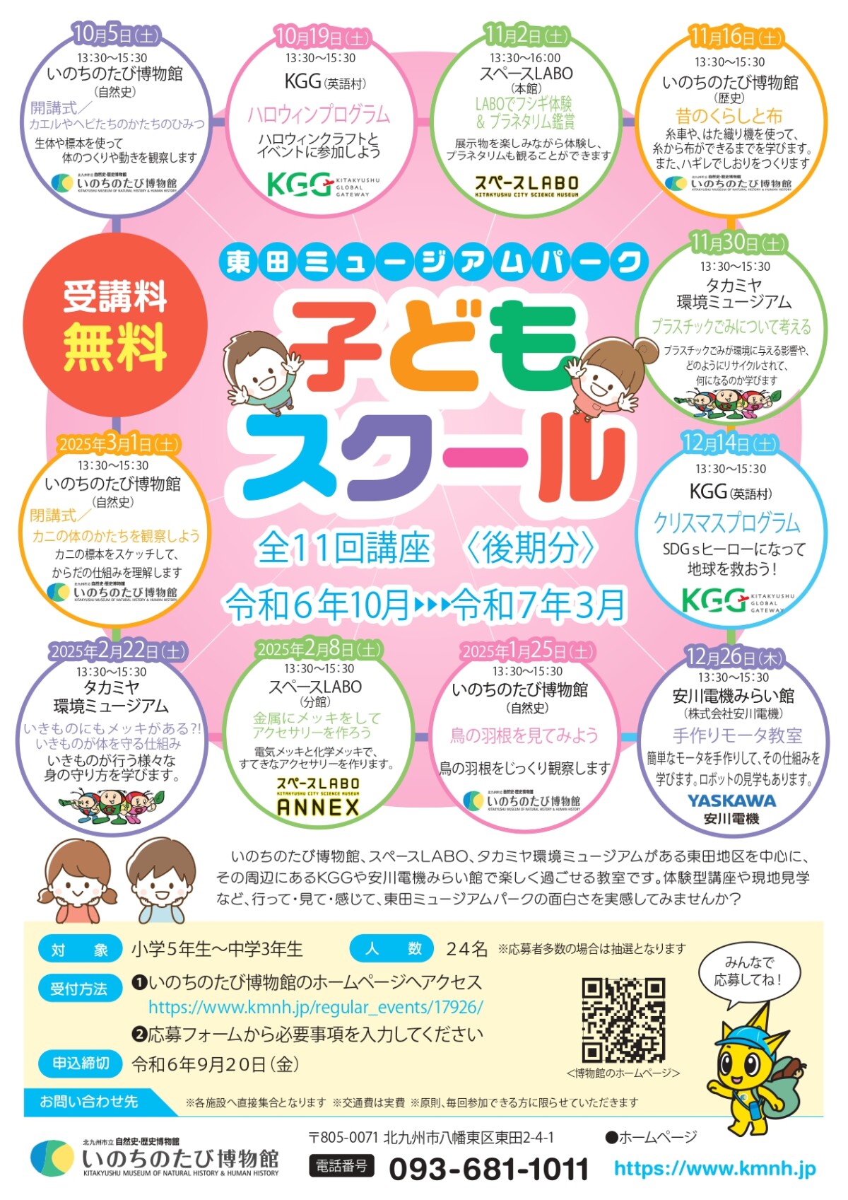 東田ミュージアムパーク「子どもスクール(後期)」が10月5日、開講します。来年3月1日までの各日程で全11回が行われ、原則全ての講座に参加が必要です。
