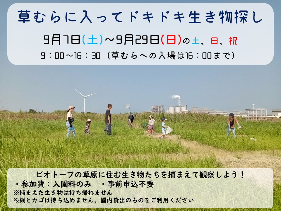 「草むらに入ってドキドキ生き物探し」イベント開催!/響灘ビオトープ