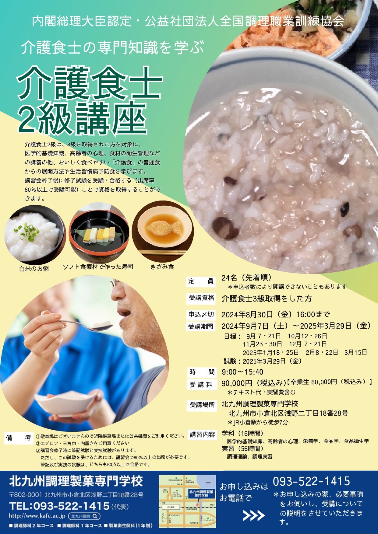 介護食士2級講座開催のお知らせ/北九州調理製菓専門学校