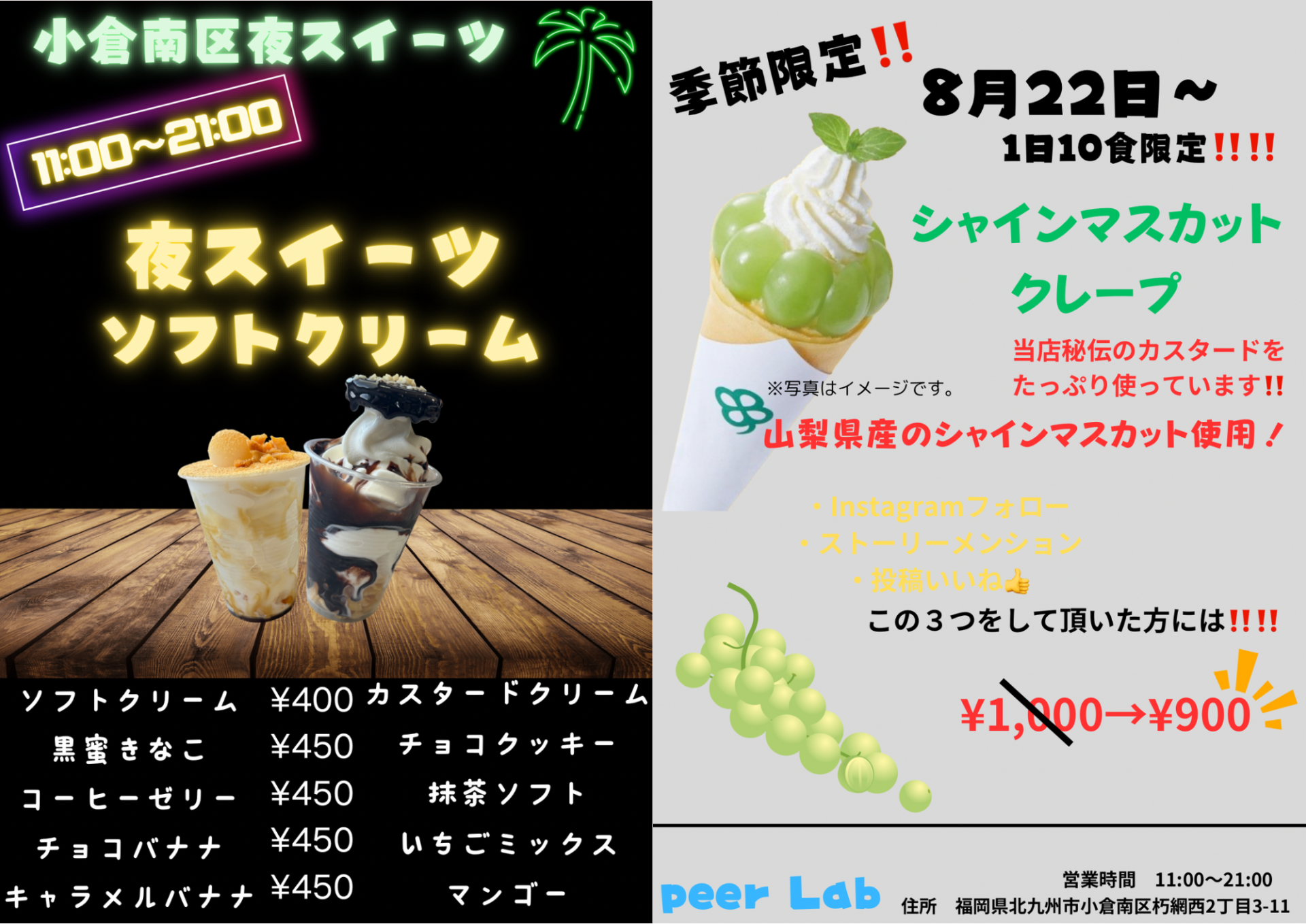 小倉南区夜スイーツ! 季節限定新作メニュー登場★/Peer Lab