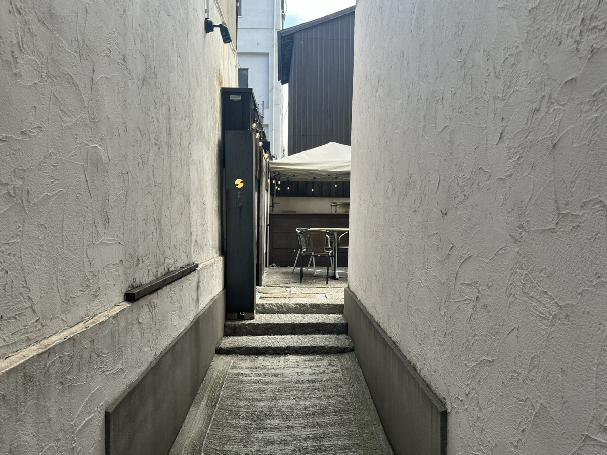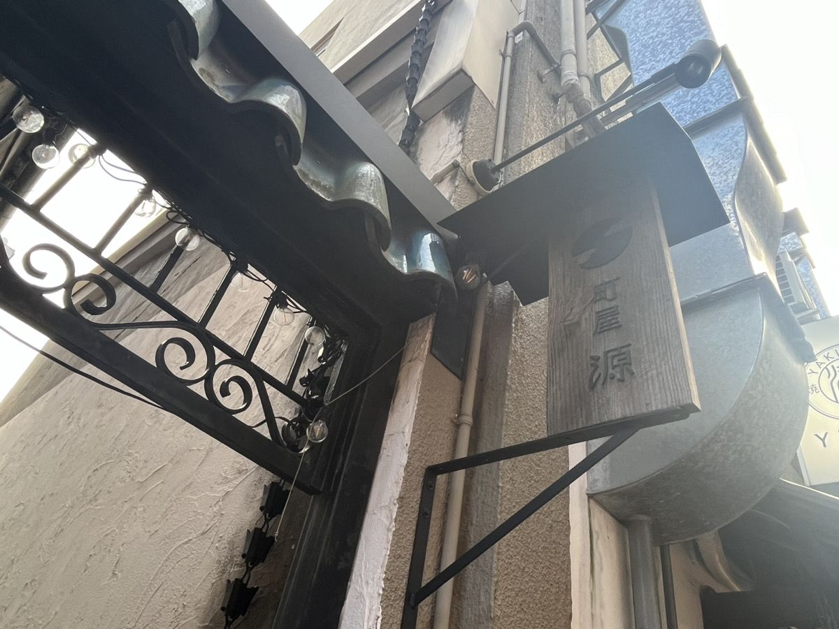 「甘味屋 源」は商店街の中にある「町屋 源」という看板を目印に入るのですが、お店は建物と建物の間を抜けた先にありました。