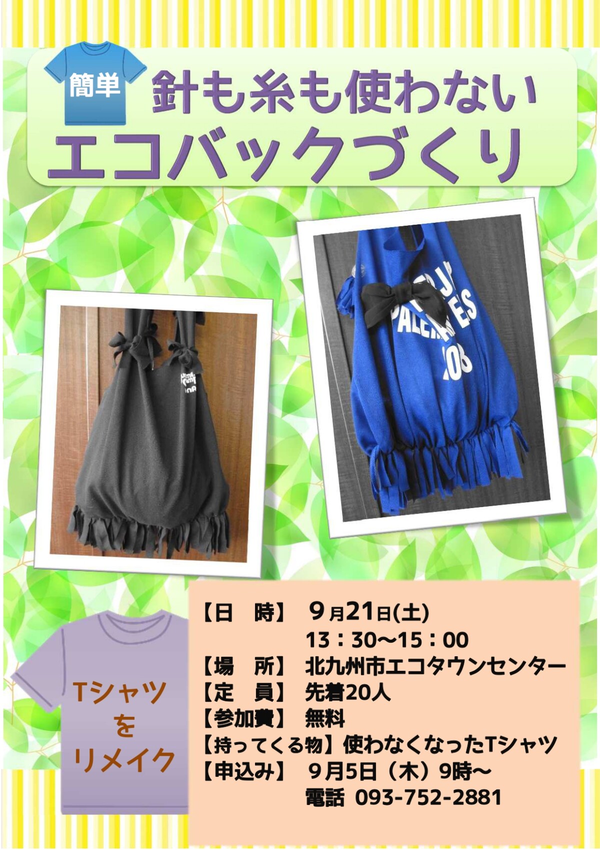9月21日には、針も糸も使わない「エコバックづくり」が行われます。
