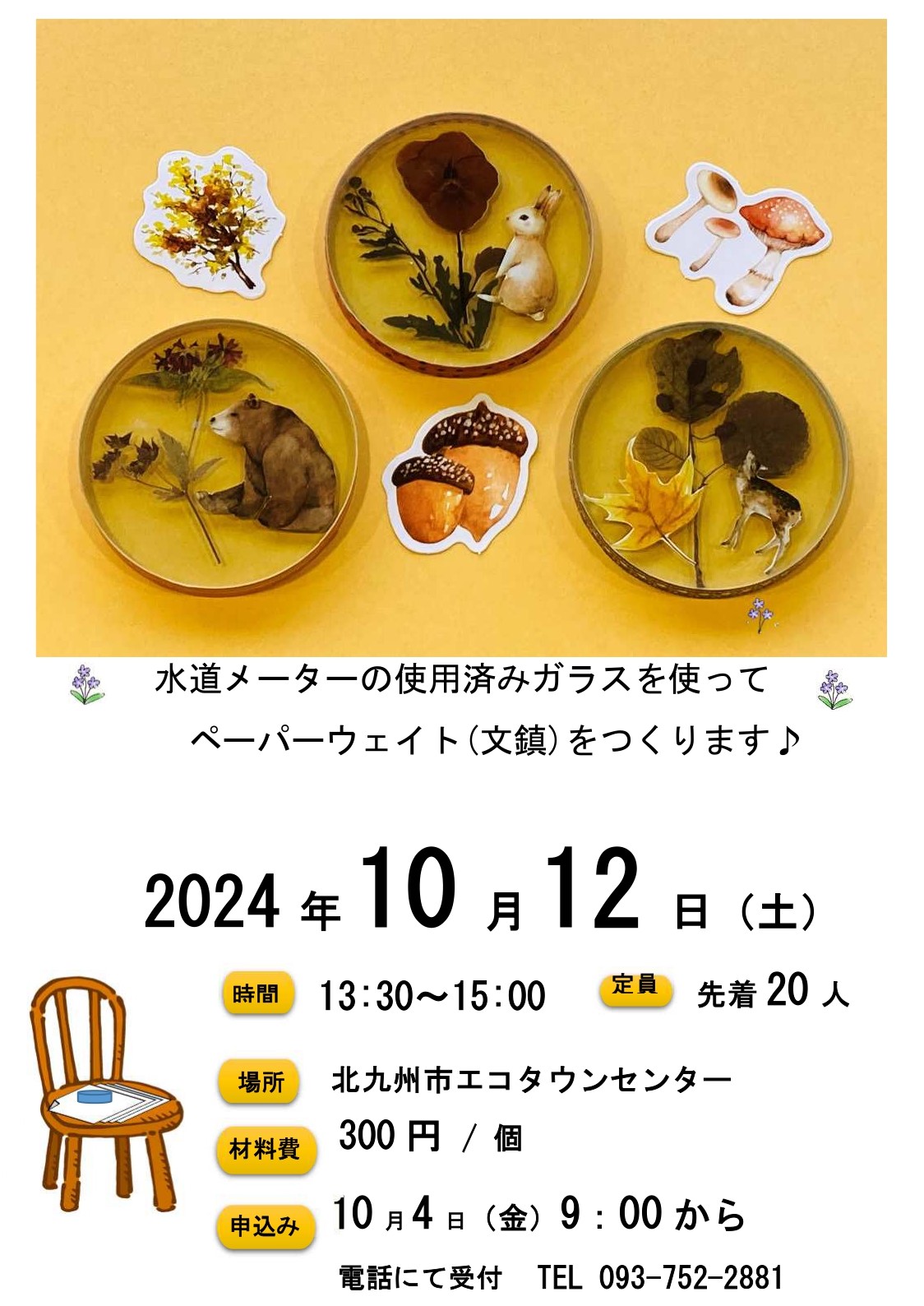 エコタウンセンター(北九州市若松区向洋町10-20)で、「エコバック」と「ペーパーウェイト」が作れるワークショップが開催されます。