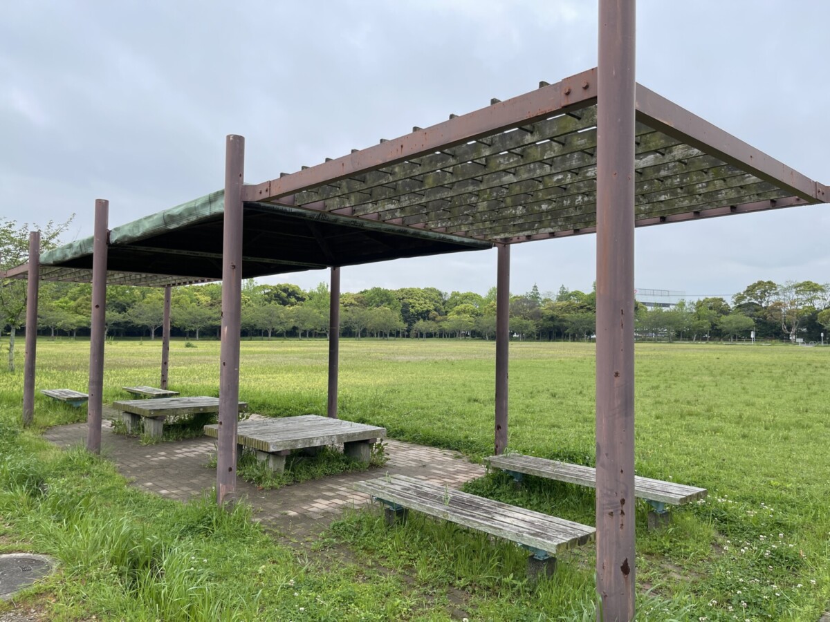 グラウンドには、ベンチや東屋も所々にあり、休憩や荷物置きに使用されていました。