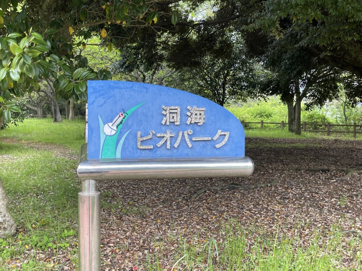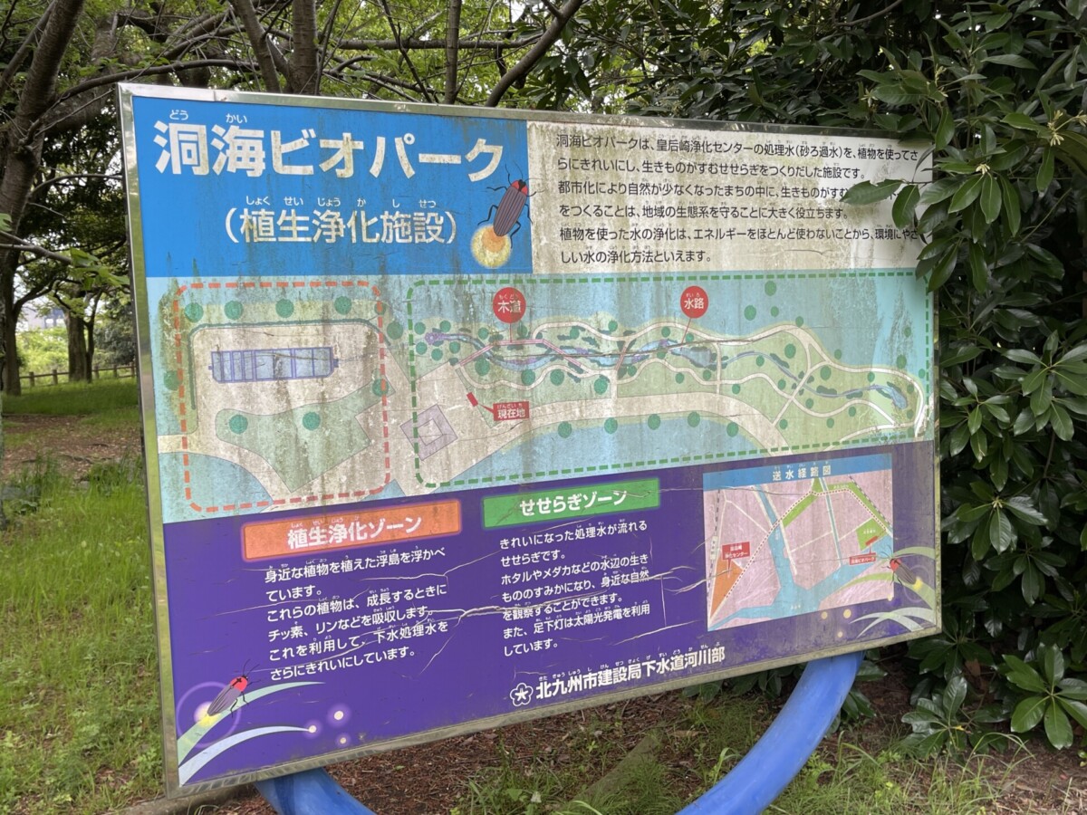 遊具の広場から奥に進むと、「洞海ビオパーク」と書かれた看板が見えてきます。
