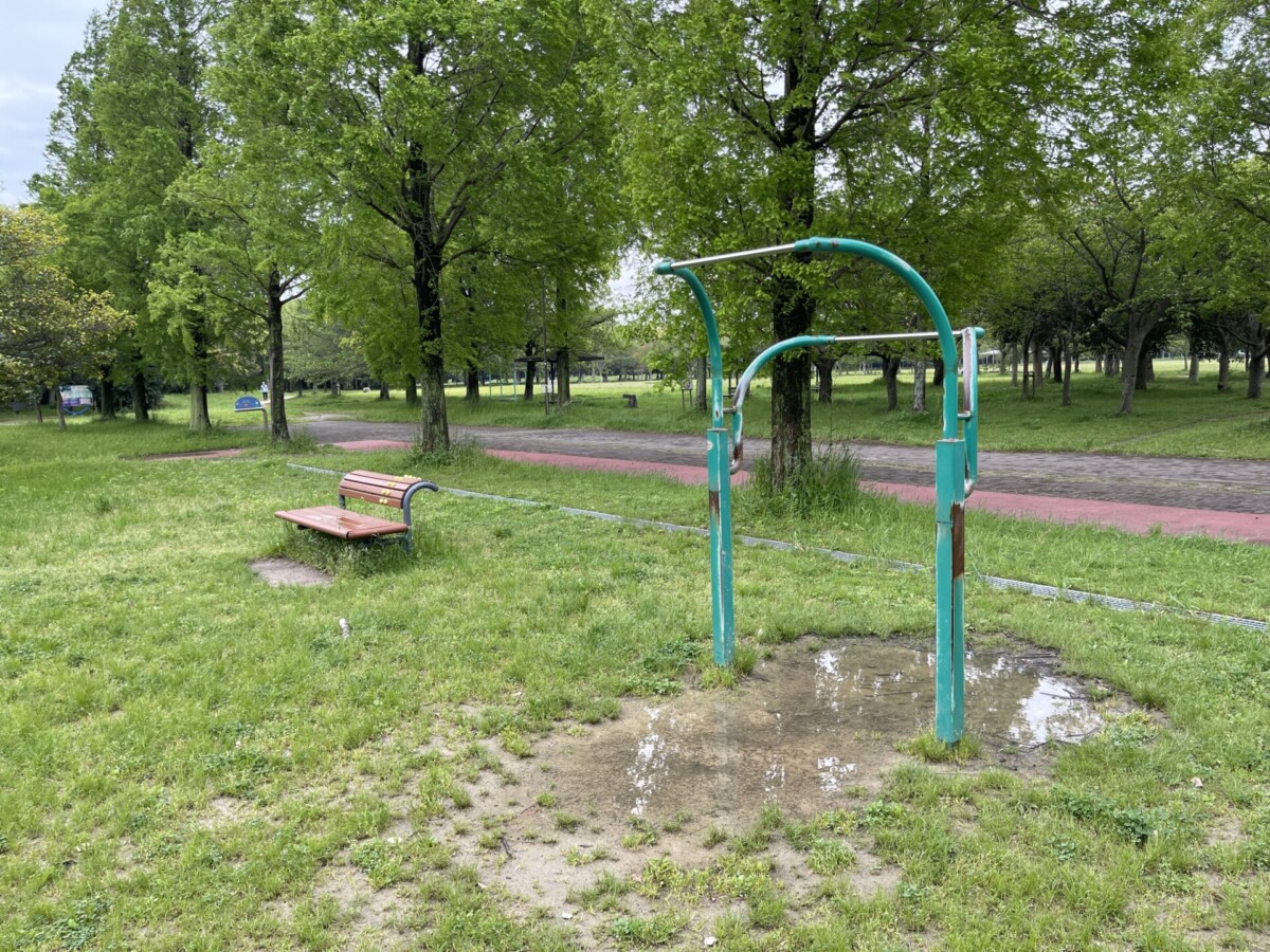 「洞海ビオパーク」の看板付近にも遊具や健康器具