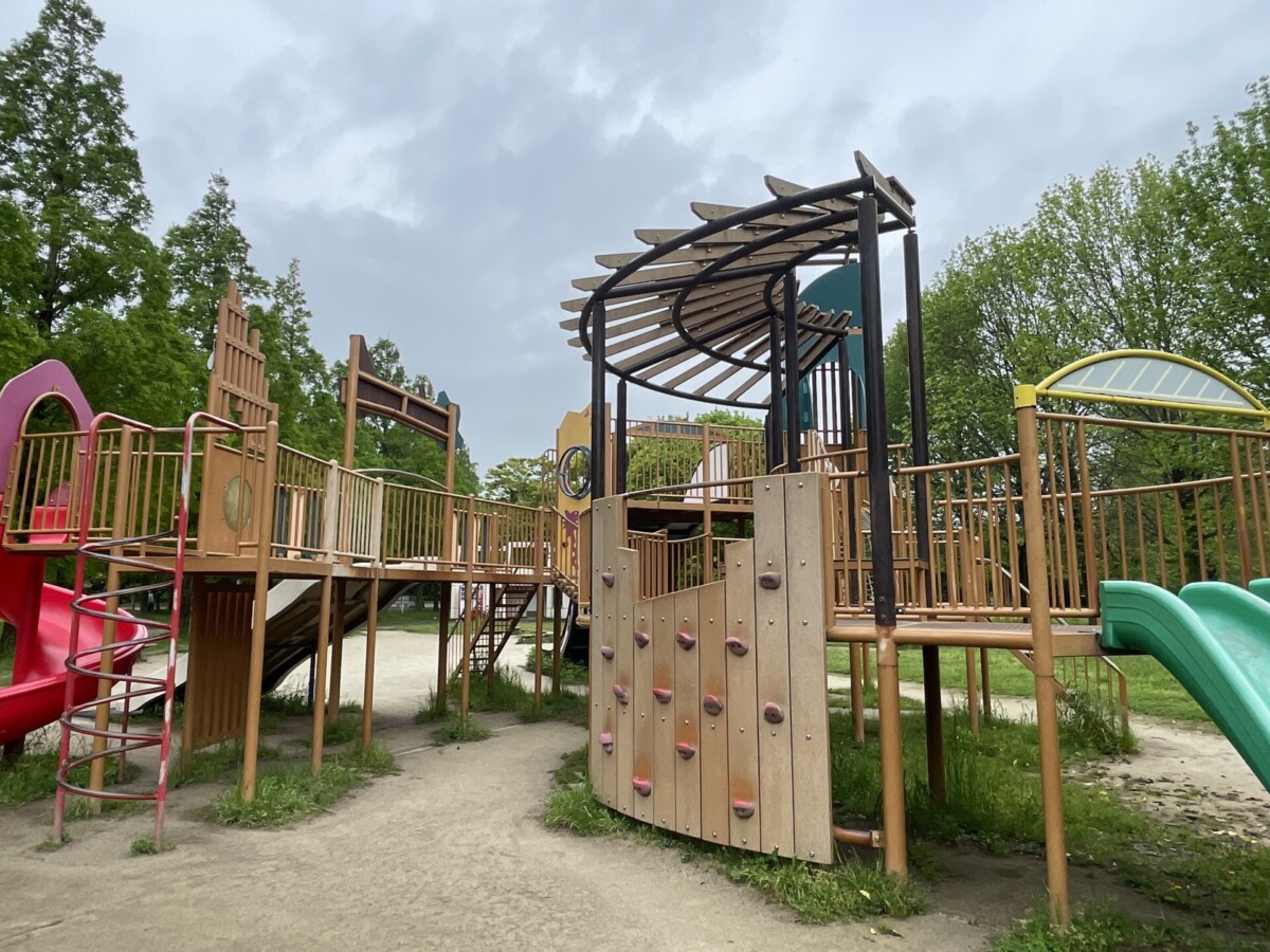 大きくて横幅のある滑り台や小さなボルダリングができる壁などがあり、小学校高学年まで楽しめそうです。