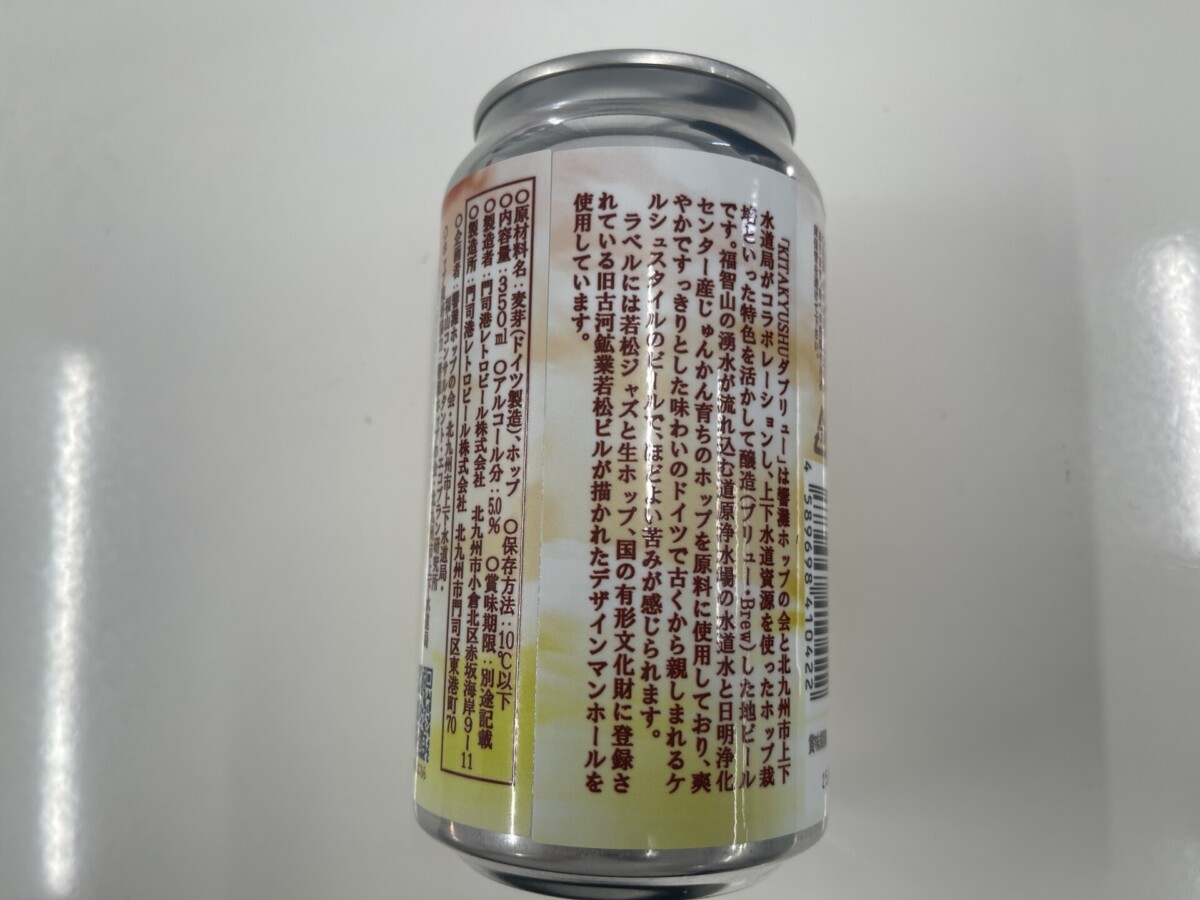 ビールのラベルの後ろには、「KITAKYUSHUダブリュー」の特徴やラベルのこだわり、売上の一部は、自然環境保全に活用されていることなどが記載されています。