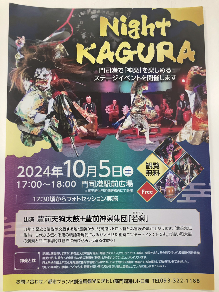 門司港駅前広場で10月5日の午後5時から、神楽を楽しめるステージイベント「NightKAGURA門司港」が開催されます。