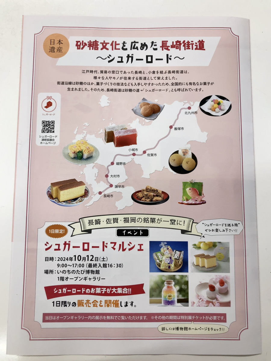 展示期間の初日である12日には、同施設1階のオープンギャラリーで「シュガーロードマルシェ」が開催。シュガーロード連絡協議会に加盟している12店舗のお菓子店が、1日限りの販売会を開催します。