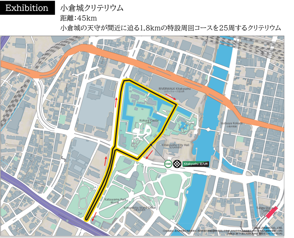 細川忠興公が築城した小倉城をぐるりと巡る1周1.8キロのコースは、天守が間近に迫る魅力的なロケーション。全25周回、約45キロのルートをおよそ1時間でフィニッシュします。時速70km近くまで加速するフィニッシュでの集団スプリントは見逃せません。