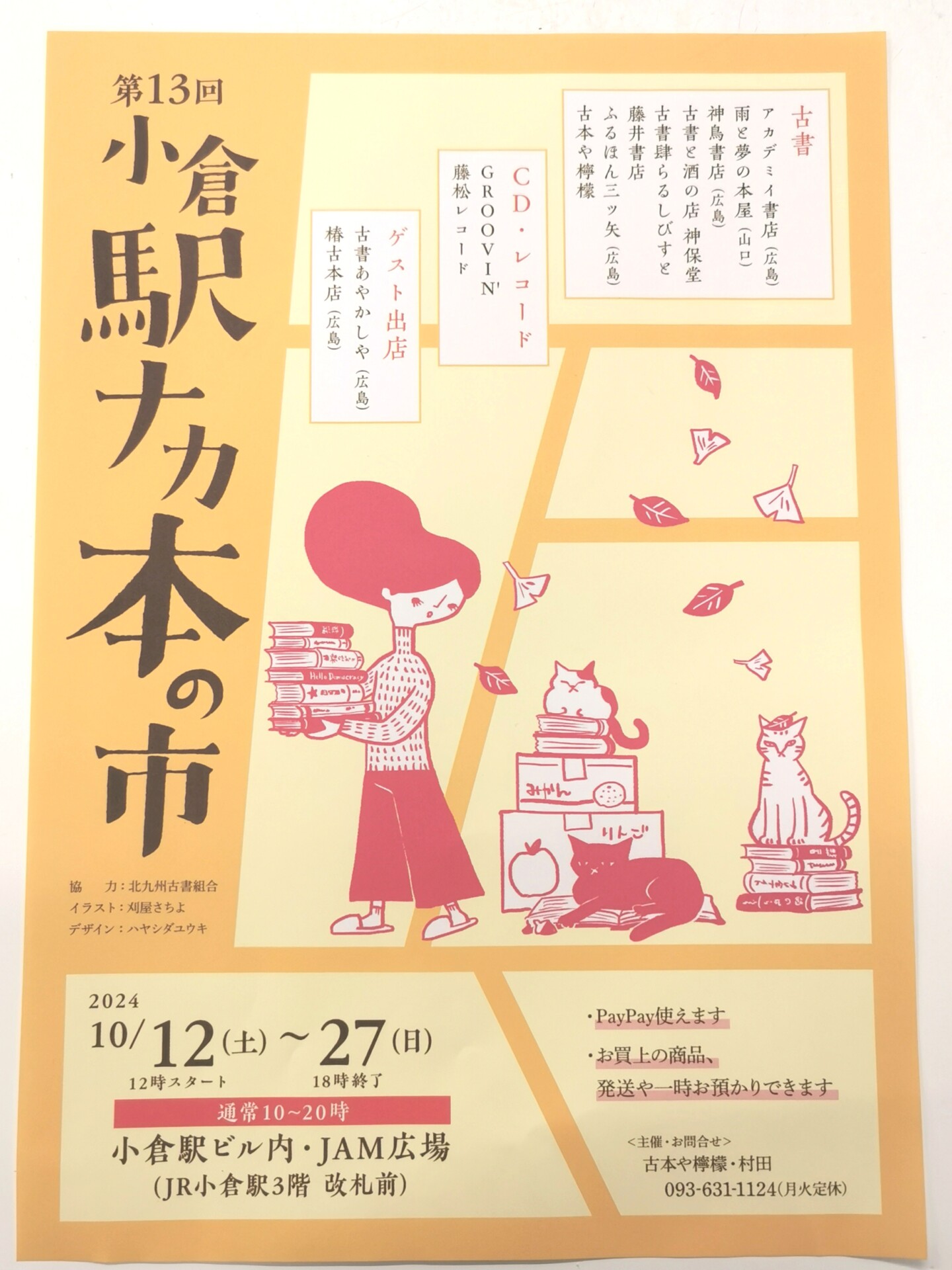 10月12日~27日の16日間にわたり、JR小倉駅3階改札前のJAM広場で「第13回 小倉駅ナカ本の市」が開催されます。