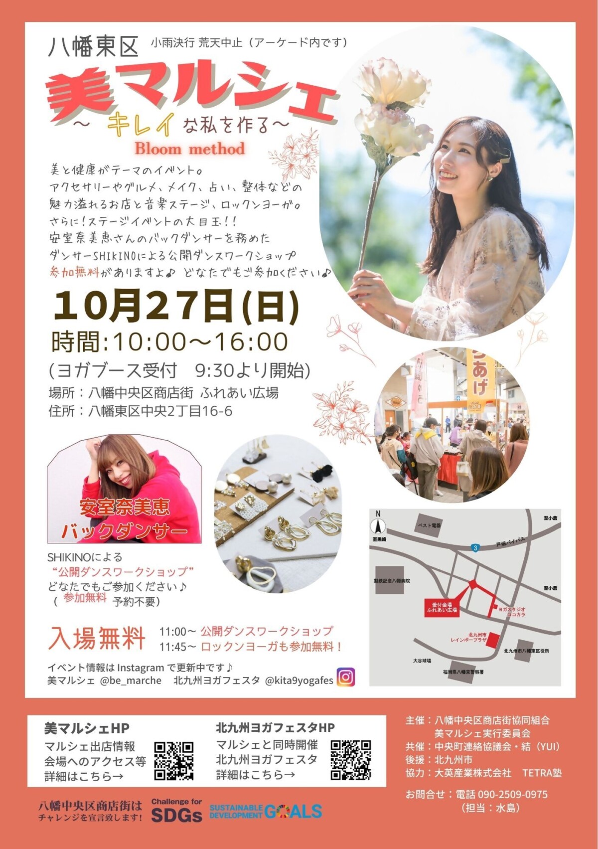 八幡中央区商店街(北九州市八幡東区中央2-16-6)のふれあい広場で10月27日、美と健康がテーマのイベント「美マルシェ」が開催されます。