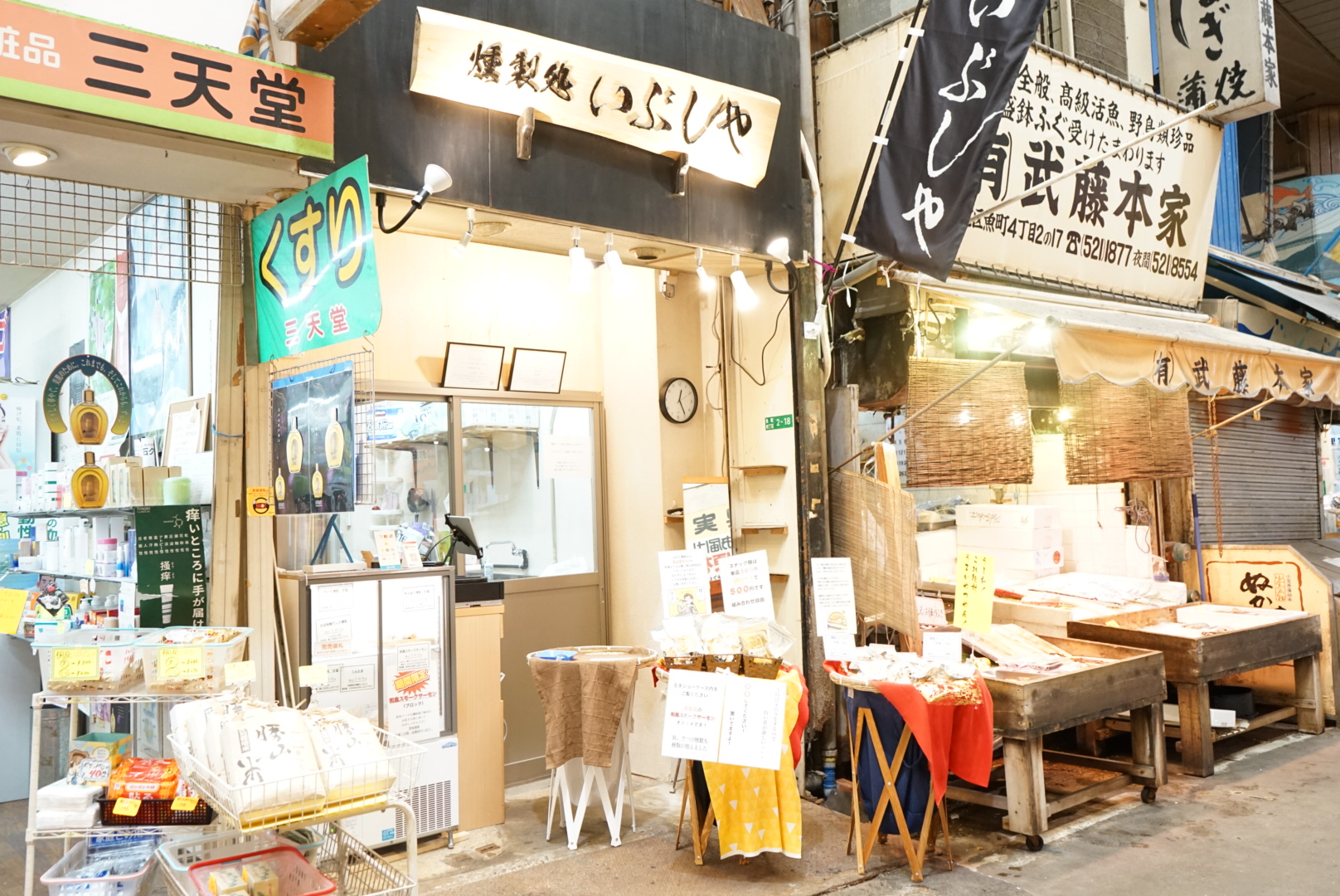 昨年12月23日、燻製専門店「燻製処いぶしや」が旦過市場内にオープンしました。店内で製造を行い、スモークサーモンや鯖の燻製、ナッツやスナック類が合わせて常時6種類ほど店頭に並んでいます(価格は300〜500円)。