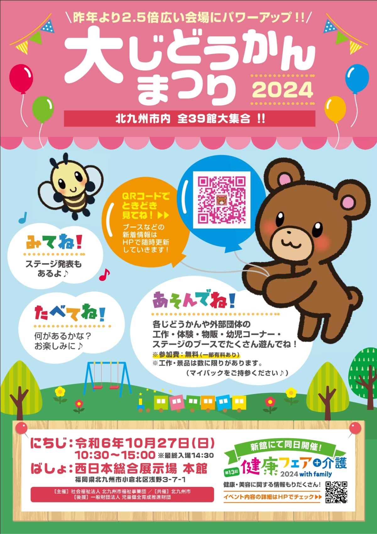 西日本総合展示場の本館(北九州市小倉北区浅野3-7-1)で10月27日、北九州市内すべての児童館が集結する「大じどうかんまつり2024」が開催されます。